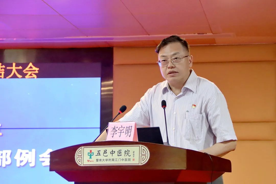 今天,江门市五邑中医院在8号楼六楼会议室召开了2022年上半年工作总结大会,总结上半年工作,部署下半年工作任务。党委书记李宇明,党委副书记、纪委书记黄锦尧,党委委员、副院长章光华、陈述祥以及全体中层干部参加。会议由党委委员、副院长余尚贞主持。