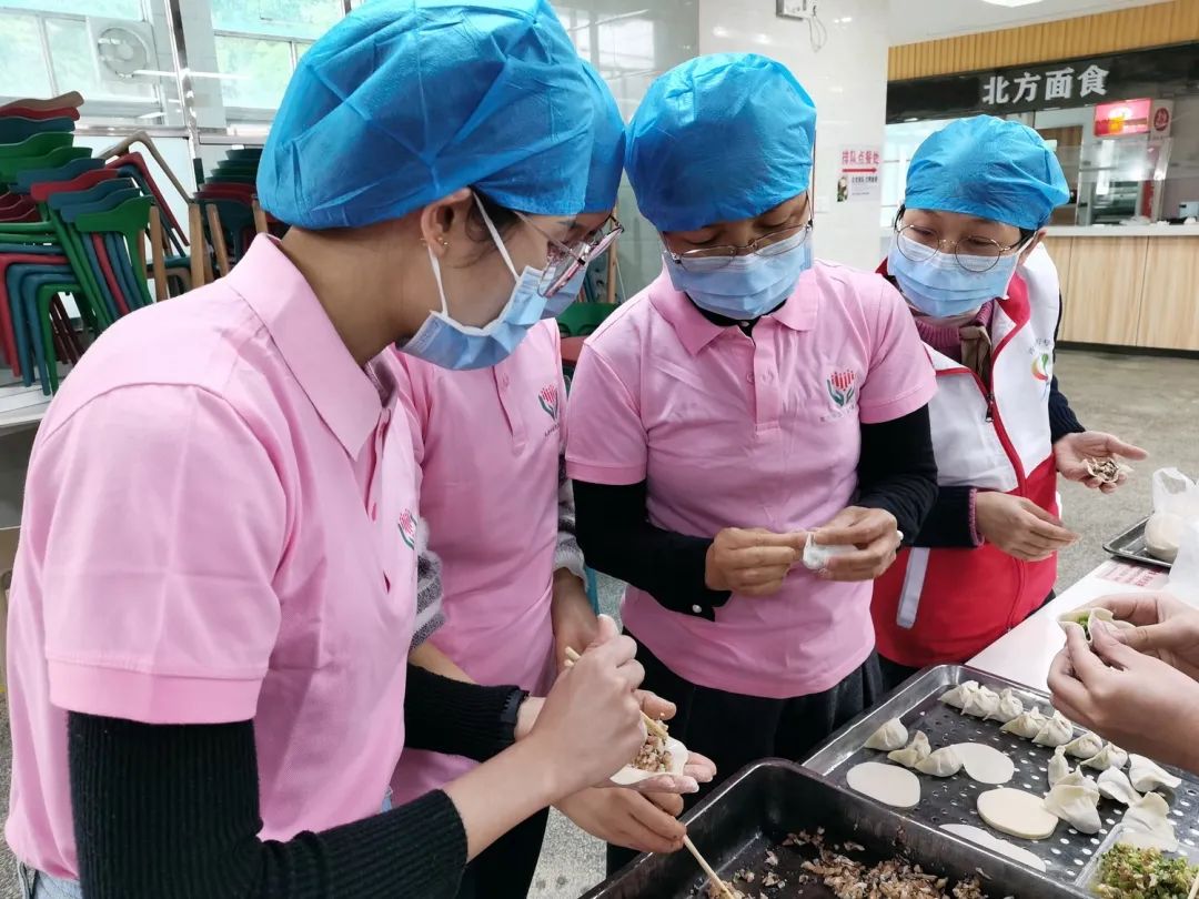上午8时,义工们齐集职工饭堂。大家分工合作,有的切菜,有的拌馅,有的包饺子,有的煮饺子……忙而不乱,不亦乐乎。大家把爱和祝福包进了饺子里,不一会儿,一盘盘形态各异的饺子完成了。
