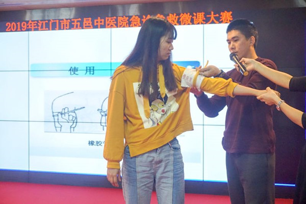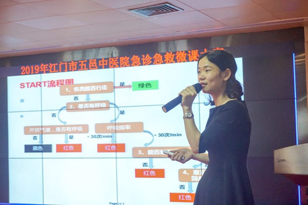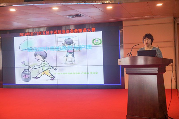 “铃铃铃…….有人晕倒了”,”某某路段发生车祸,快来救命”,“某某地方发生火灾,请马上出车,准备救人”……,救命就打“120”,已经深入人心,因此急诊科担任着治病救人的第一站,是医院中重症病人最集中、病种最多、抢救和管理任务最重的科室,是所有急诊病人入院治疗的必经之路。掌握各种专业急救方式,抢救生命,快速反应,是急诊人必须掌握的技能。我们的岗位就是责任,时间就是生命。温故知新,逆水行舟,不进反退,时刻复习急救技能,提高自身急救专业水平,筑起生命的“防火墙”,是急诊人应尽的责任。为了不断鞭策自己提高急救专业水平,五邑中医院急诊科举办了一场简单而隆重的急救微课比赛。