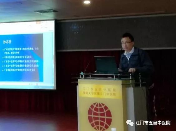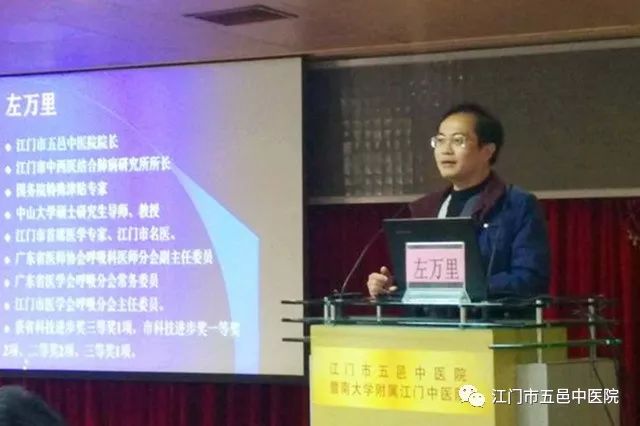 ↑江门市五邑中医院院长/江门市中西医结合肺病研究所所长左万里教授作精彩演讲。