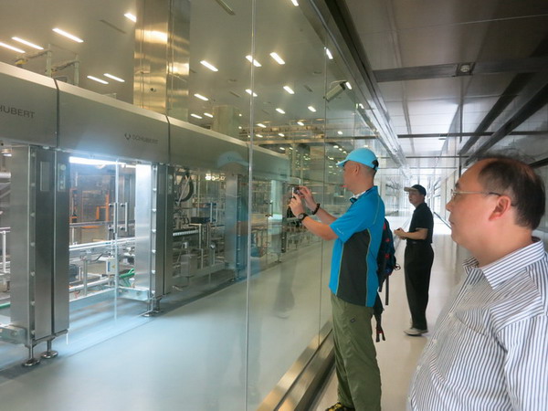马少锋所长一行仔细参观考察了江西江中药业股份有限公司的片剂和液体制剂生产车间,详细了解了相关剂型的生产流程,深入考察了全自动化生产线、现代仓贮的各类设备和先进的质控检测设备。