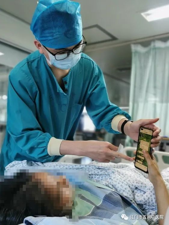 ▲护士帮助患者使用手机