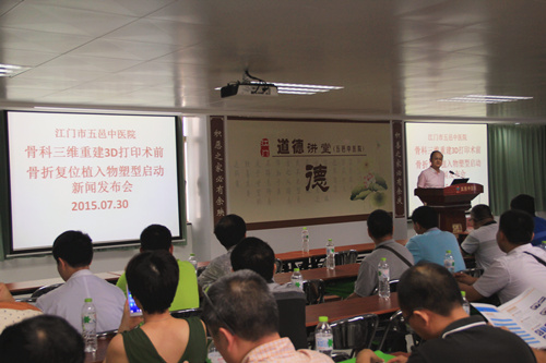 为总结交流3D打印技术在骨科手术方面应用的成功经验,促进新技术新业务的开展,不断提高诊断治疗水平,由市五邑中医院主办的“骨科三维重建3D打印术前创伤复位植入物塑型启动新闻发布会”今天下午在该院12号楼8楼顺利召开。