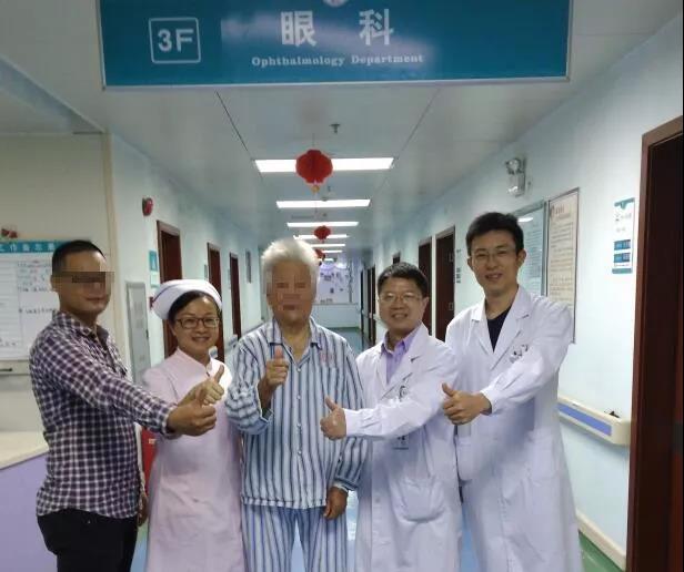 术后次日复查,医生为简阿婆摘下罩在眼睛上的纱布时,阿婆睁开眼睛环顾四周,然后对着龙主任笑了。其女儿竖起手指在她眼前晃了晃,问“妈妈,能看清吗?”“看得清,看得清!”失语的老人突然间喜笑颜开,连声作答,又抬手指了指远处,激动地说:“那边的人我也能看得清,太好了,我要赶快回去看我的小孙仔去!”阿婆憨态可掬,把在场的人员都逗笑了。