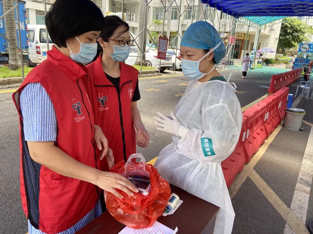 ▲党员义工到发热门诊派送防疫凉茶