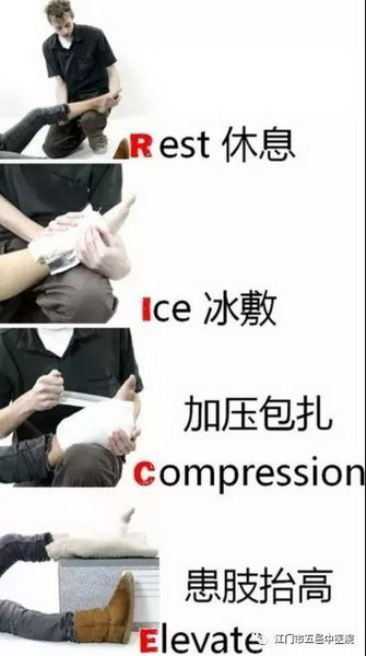 冰敷后弹力绷带的包扎可以减轻肿胀,减少内出血。弹力绷带包扎需松紧适度,不可过紧,以免引起血运障碍。严重的踝关节扭伤则建议石膏或外支具固定2-3周,保持休息制动的状态。