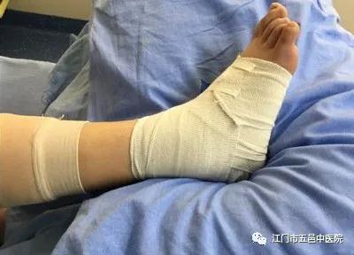 适逢周末,爱好运动的吴先生向往常一样去打网球,没想到不慎扭伤了脚,导致右踝关节疼痛、肿胀3小时,随后吴先生来到江门市五邑中医院骨八科门诊,经过X线检查显示右踝未发现骨折,接诊的范主任告诉吴先生需要用冰敷,石膏外固定2周。
