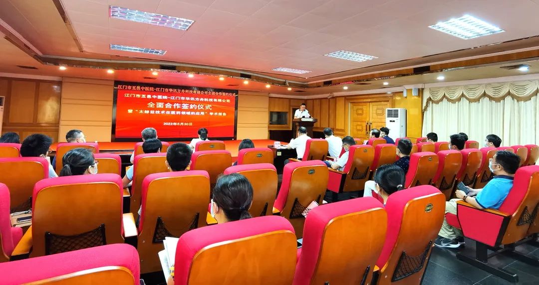 5月30日是第六个“全国科技工作者日”。当日下午,江门市五邑中医院与江门市华讯方舟科技有限公司(以下简称为江门华讯方舟)全面深度合作签约仪式暨“太赫兹联合实验室”揭牌仪式在江门市五邑中医院礼堂隆重举行。