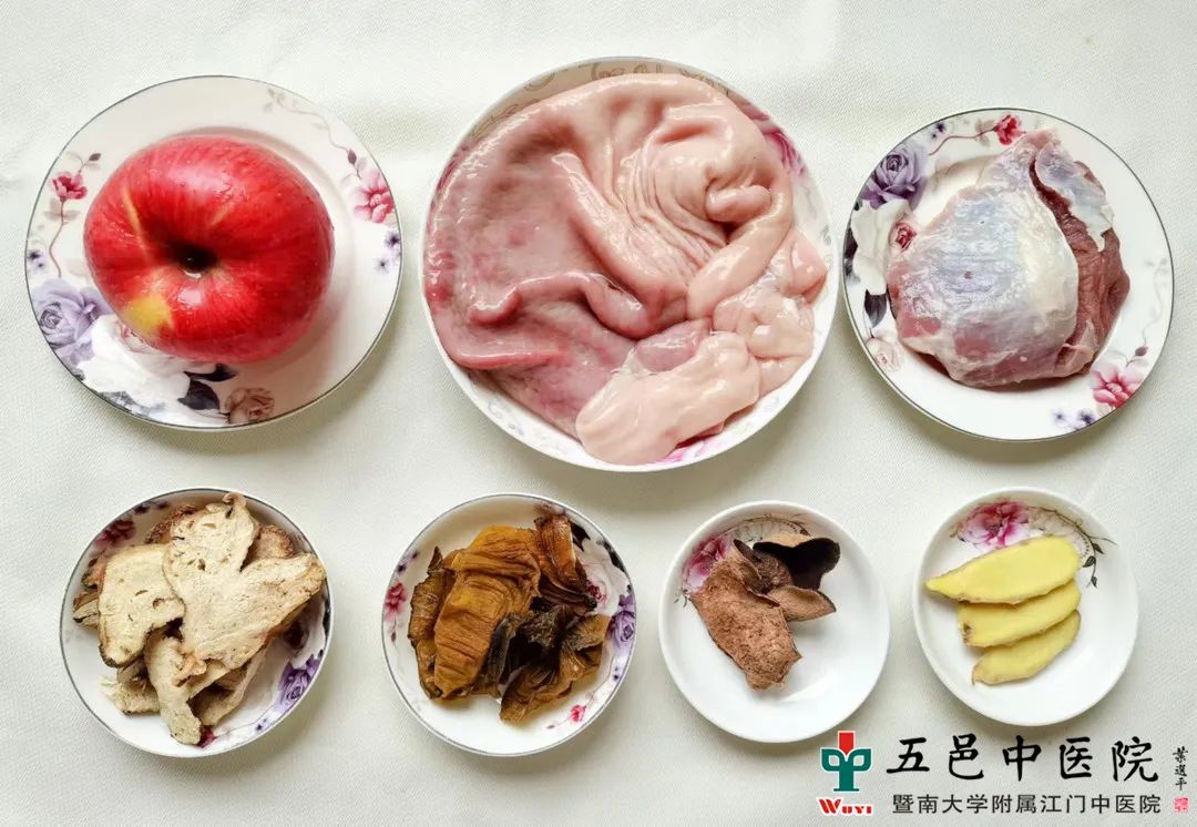 猪肚是广东人常用的健脾胃食材。现代营养学研究发现,猪肚中可提取出丰富的胃泌素、胃蛋白酶,这些物质对胃肠道黏膜和胰腺均有一定的保护作用,可促进胃酸分泌和胃黏膜生长。将它们合而为而汤,具有消食化滞、健脾和胃、生津补益的食疗功效。