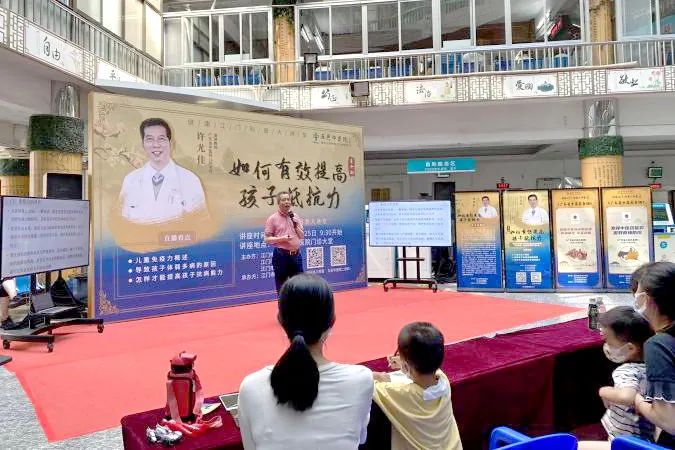 许教授从传统中医学角度,介绍了免疫力。免疫力在中医学里被称为“正气”,也就是我们常说的“抵抗力”。告诉现场及线上家长,要按照不同年龄阶段儿童“抵抗力”的特点来给自家的小孩“进补”,调节免疫力。许尤佳教授一再强调家长们要注重儿童脾胃的照顾,中医讲顾护脾胃,就是在调节免疫力。