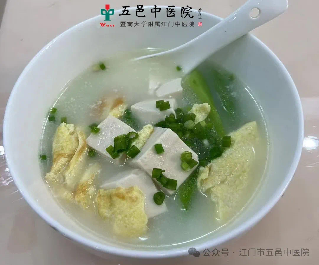 功效:丝瓜有清热化痰、凉血解毒的作用,豆腐生津润燥、补中益气,鸡蛋可滋阴润燥、养血安胎,生姜温中止呕,葱有解毒祛风之效。