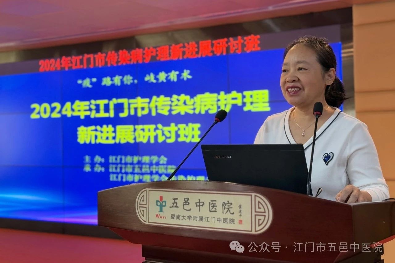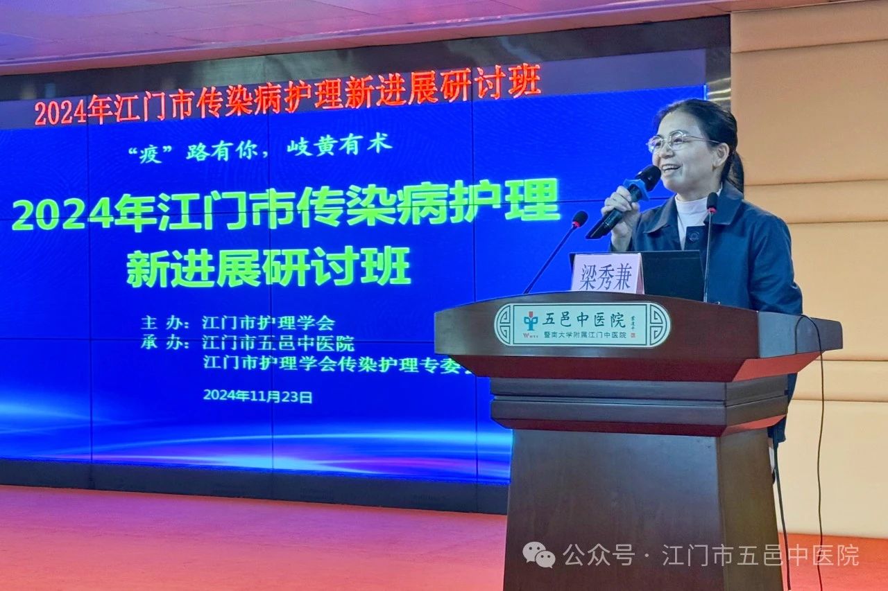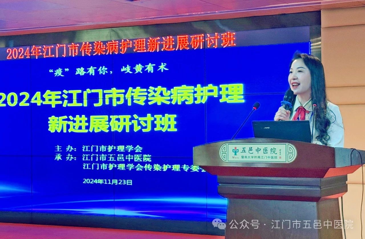 为推动我市传染病护理事业的发展,传播、推广护理新理念、新技术、新方法,进一步提升全市护理人员传染病护理专业素养,尤其是中西医结合护理服务能力,由江门市护理学会主办、江门市五邑中医院承办的“2024年江门市传染病护理新进展研讨班”于2024年11月23日下午在江门市五邑中医院8号楼6楼会议室顺利举办。