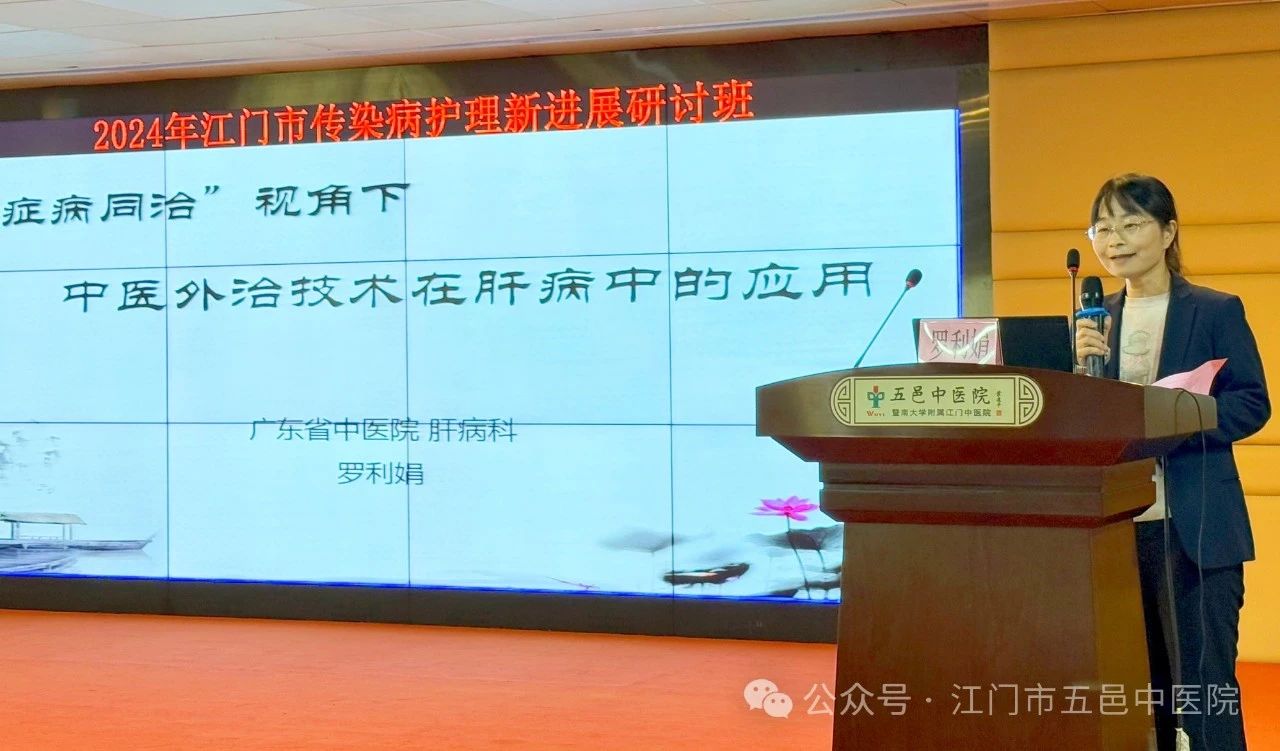▲广东省中医院肝病专科护士、主管护师罗利娟讲授《“症病同治”视角下的中医外治技术在肝病专科的应用》