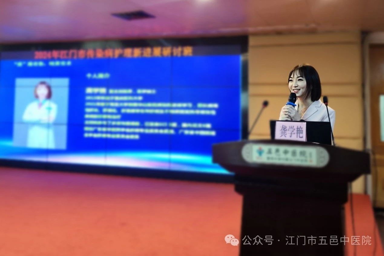 ▲江门市五邑中医院护理部负责人梁秀兼副主任致辞