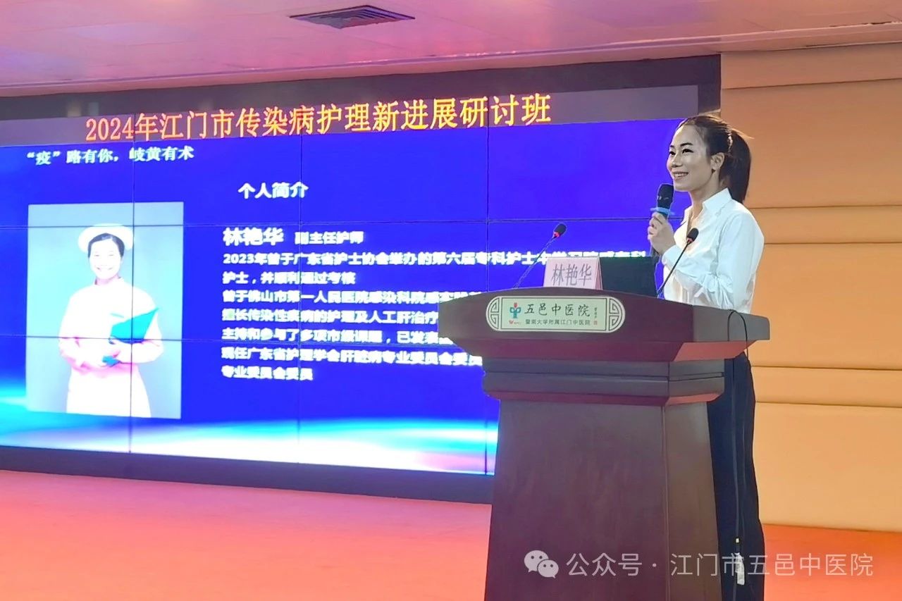 ▲江门市五邑中医院感染性疾病科专科护士林艳华分享《火针在蛇串疮治疗中的效果及注意事项》