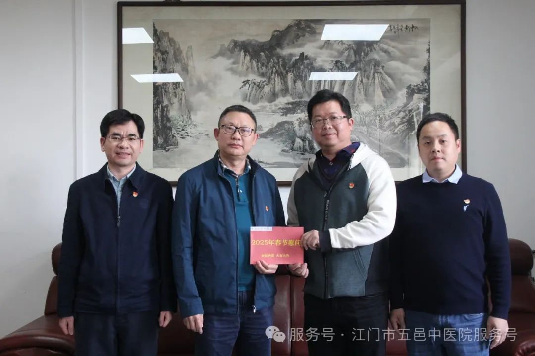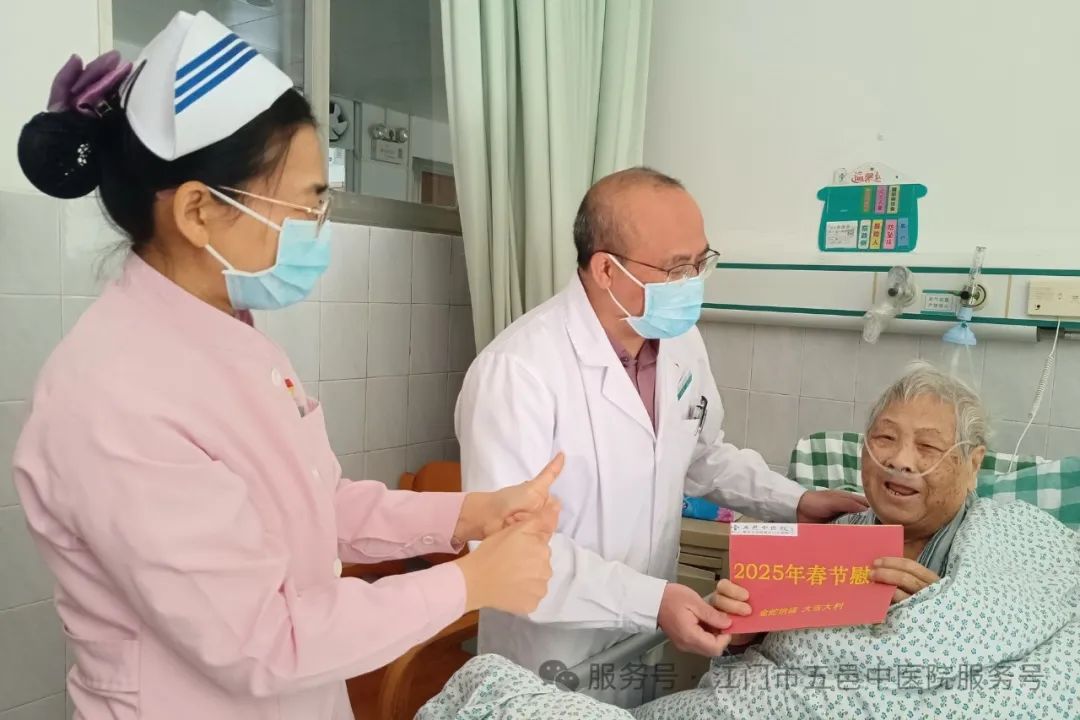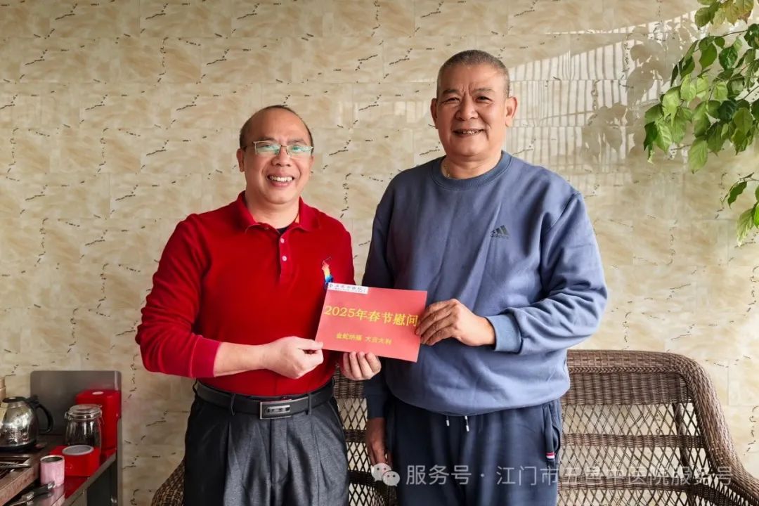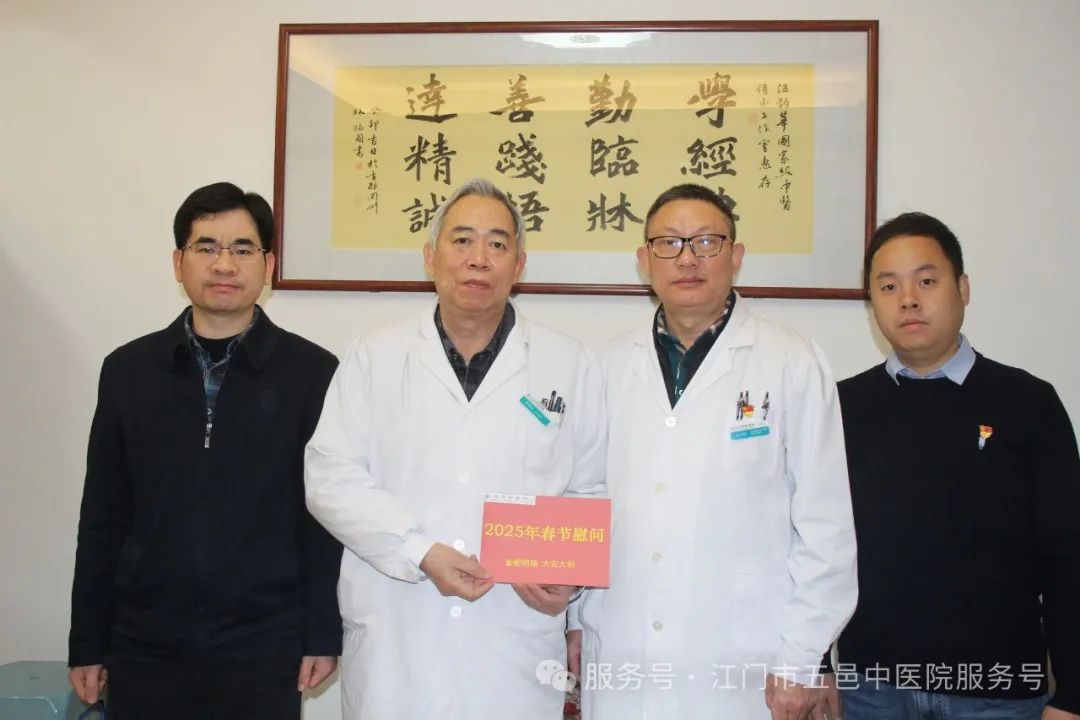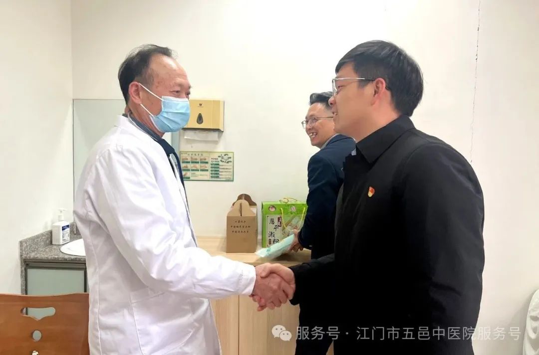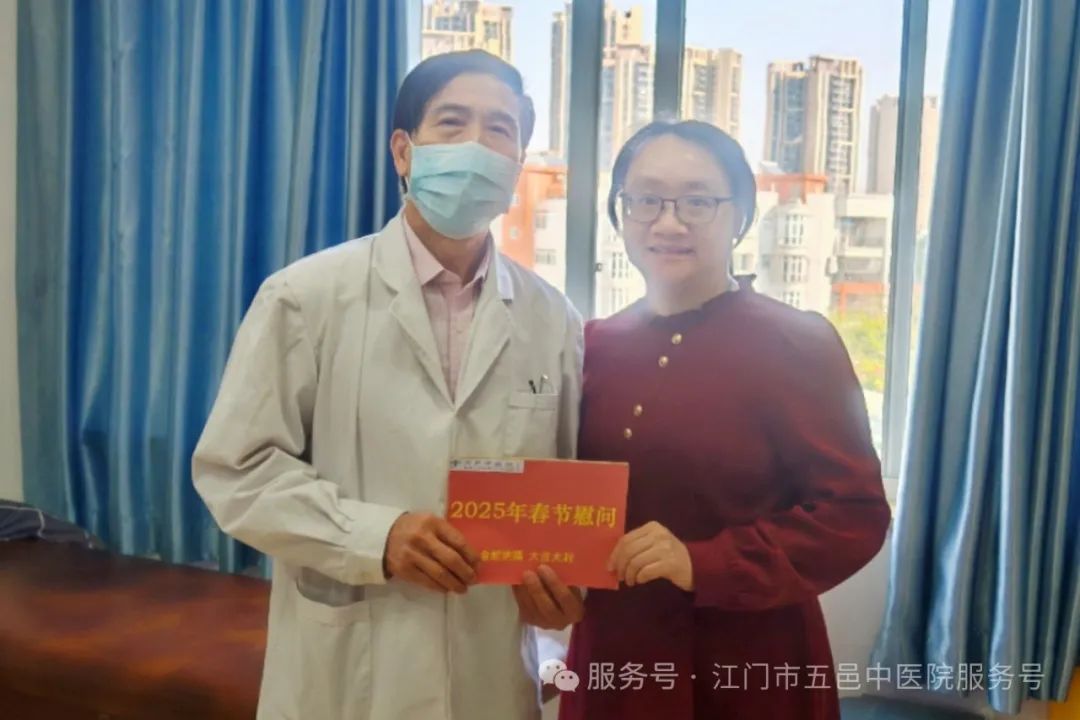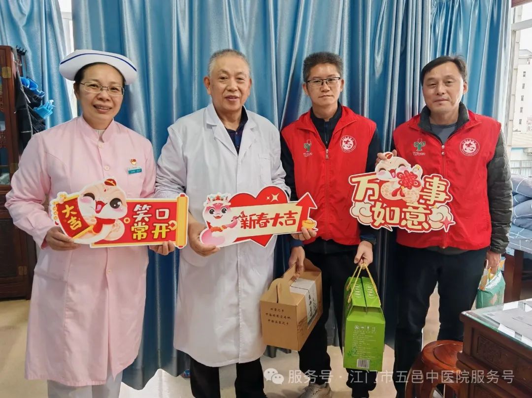 关爱常在,温暖如初。在春节来临之际,江门市五邑中医院通过召开离退休职工迎春茶话会、上门走访慰问等方式开展春节前慰问活动。医院党委书记张灵,党委副书记、院长章光华,党委副书记李鹏飞,党委委员、副院长余尚贞,党委委员、副院长何明亮等院领导参加了慰问活动。