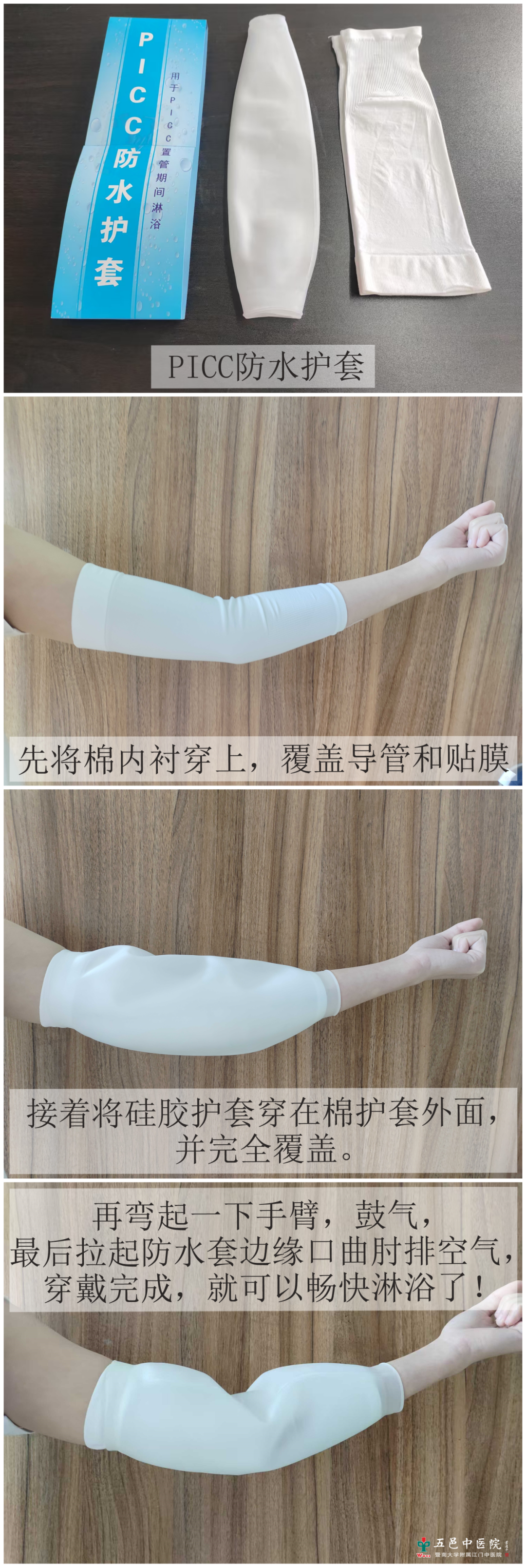 导管的“小房子”(透明贴膜或纱布)最怕水啦!洗澡时,给它穿上“防水战袍”(防水袖套或保鲜膜),就像给它撑起一把小伞,防止水偷偷跑进去。
