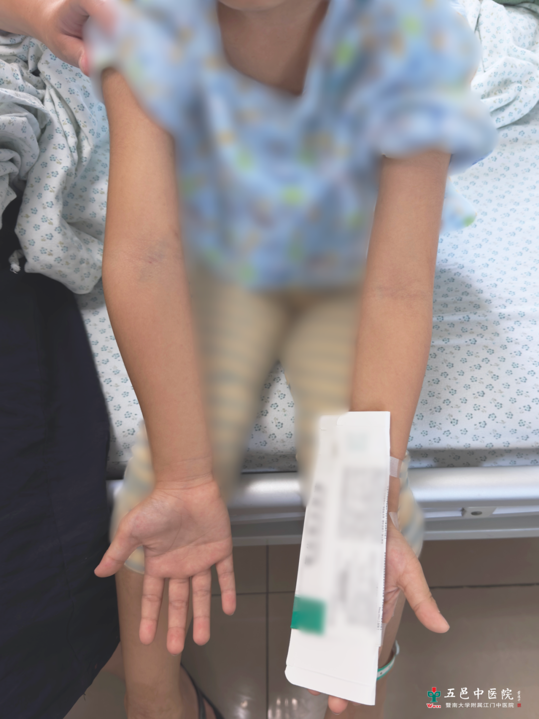 入住医院关节与小儿骨科后,小欣接受了右肱骨髁上三维截骨矫正术,畸形得以矫正,术后1个月查体可见双上肢伸直位携带角基本一致。目前,他在等待拔除内固定,后期通过康复训练小欣有望恢复正常的功能和外观。