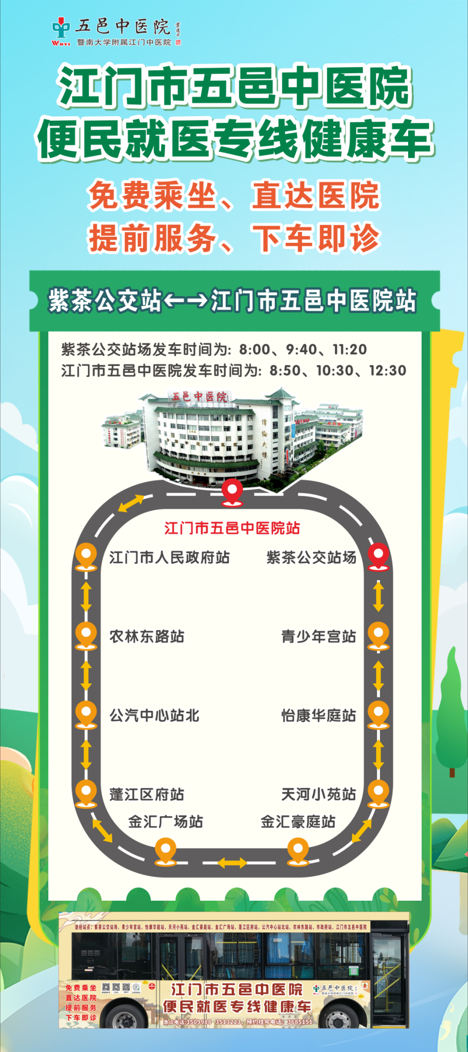 免费、免费、免费 ⬆️ 重要的事情说三遍 ⬆️为进一步提升患者的就医体验,解决市民就医“停车难”问题,打造有温度的医院。2025年2月13日(年十六)江门市五邑中医院“便民就医专线健康车”正式运行!所有来院就诊患者及家属、探视人员均可免费乘坐!免...