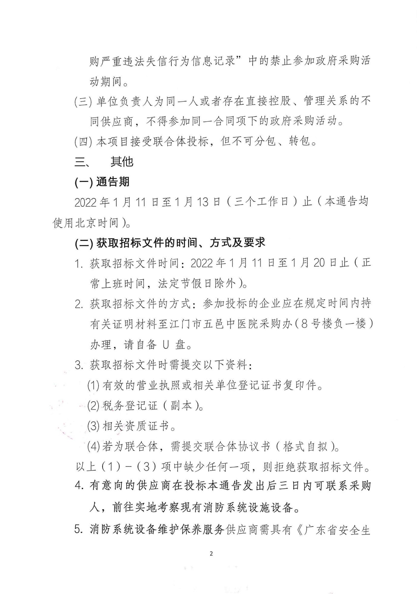 江门市五邑中医院消防安全巡查及设备维护服务项目招标通告