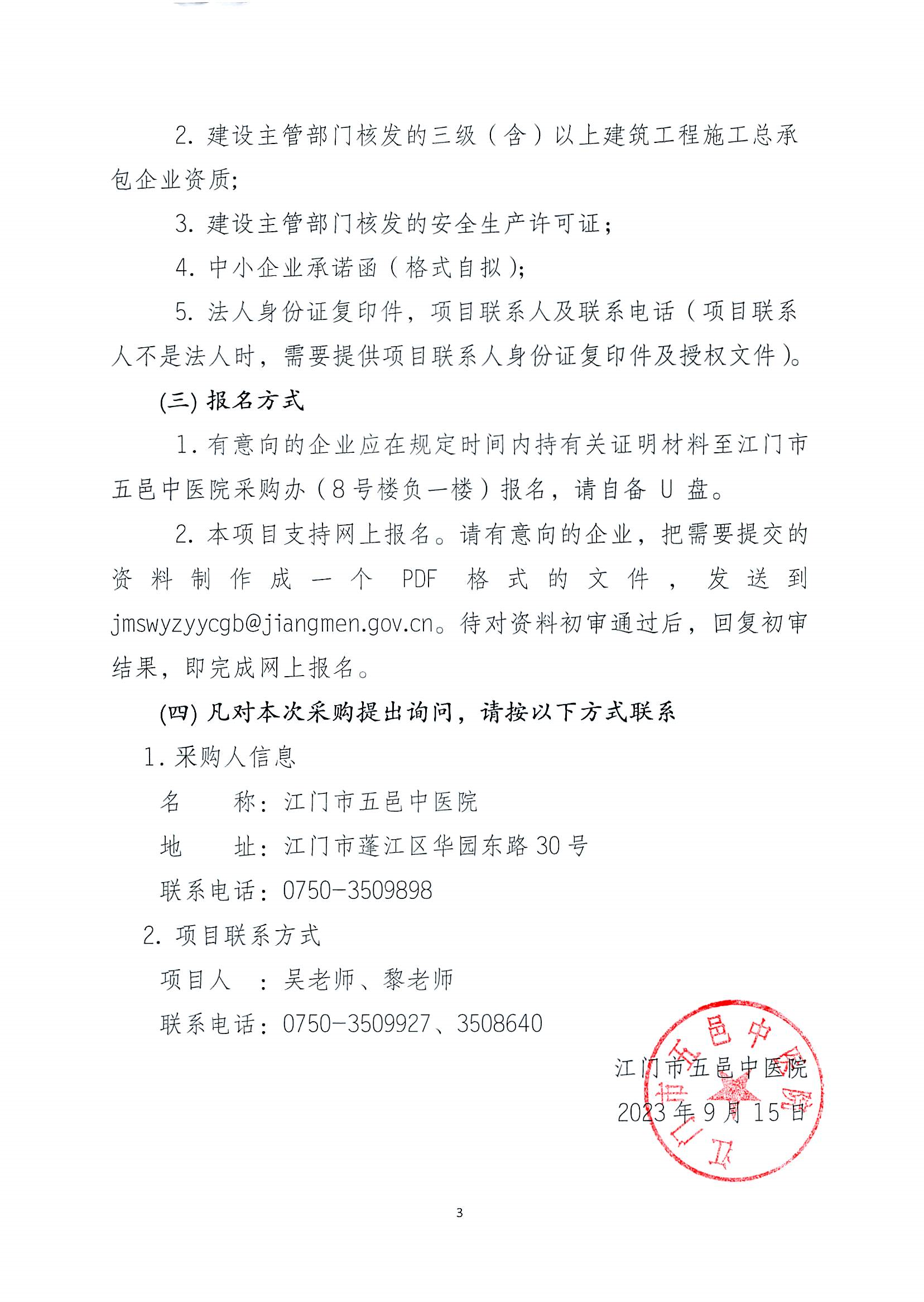 江门市五邑中医院高压氧舱氧气及消防管道安装工程项目通告(第二次)