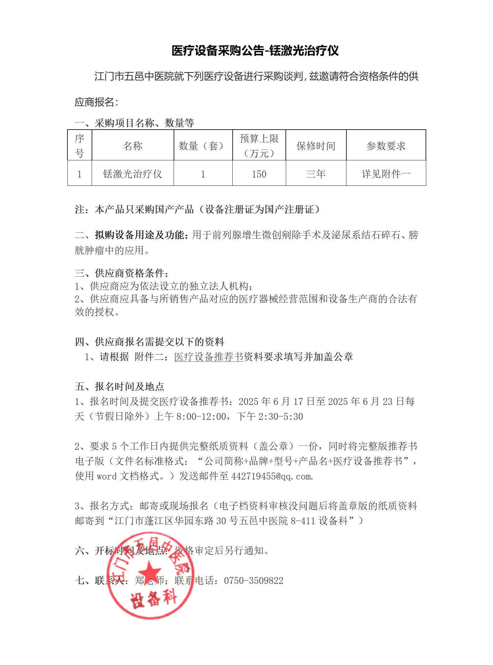 附件二:五邑中医院医疗设备推荐书模板.docx