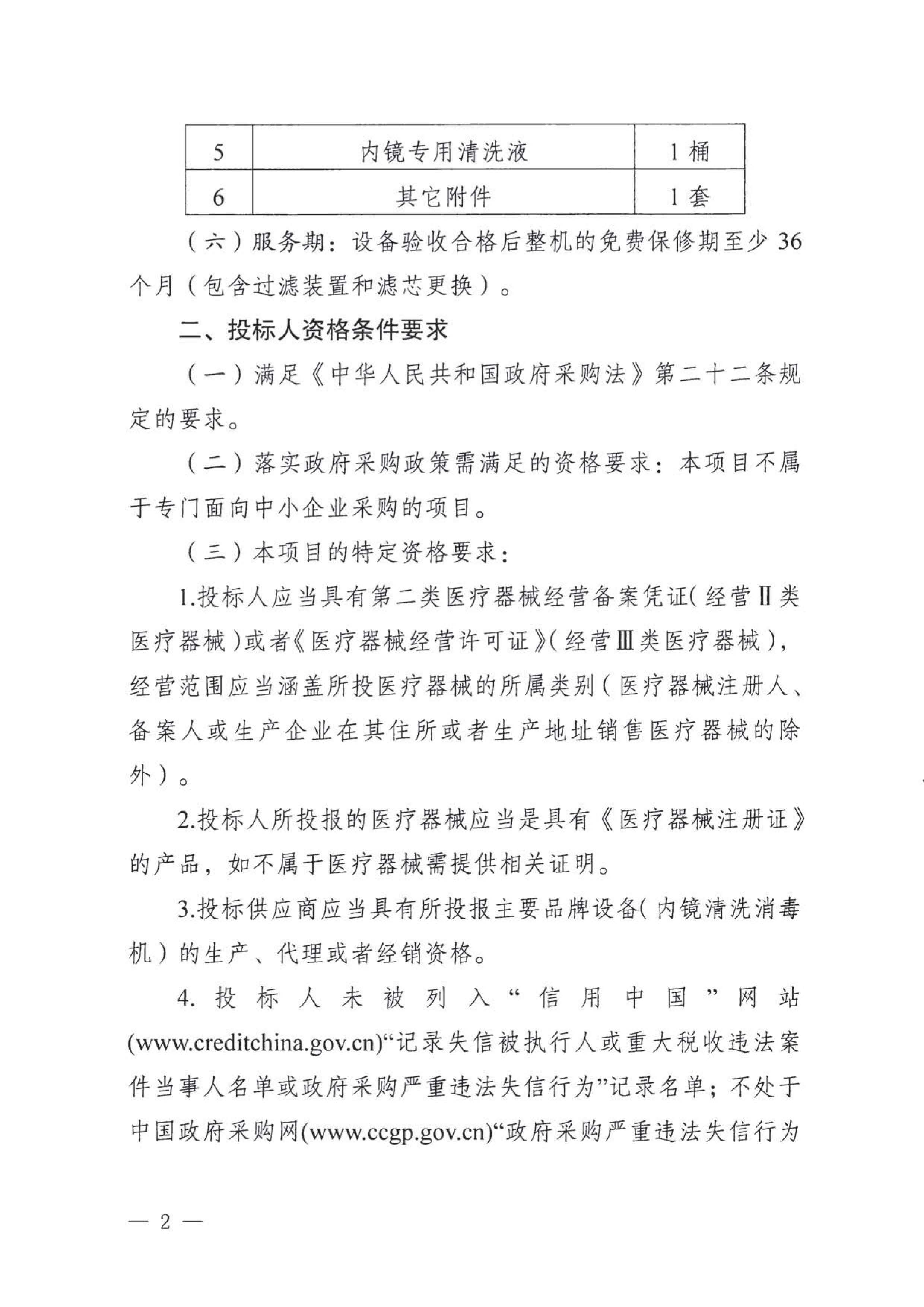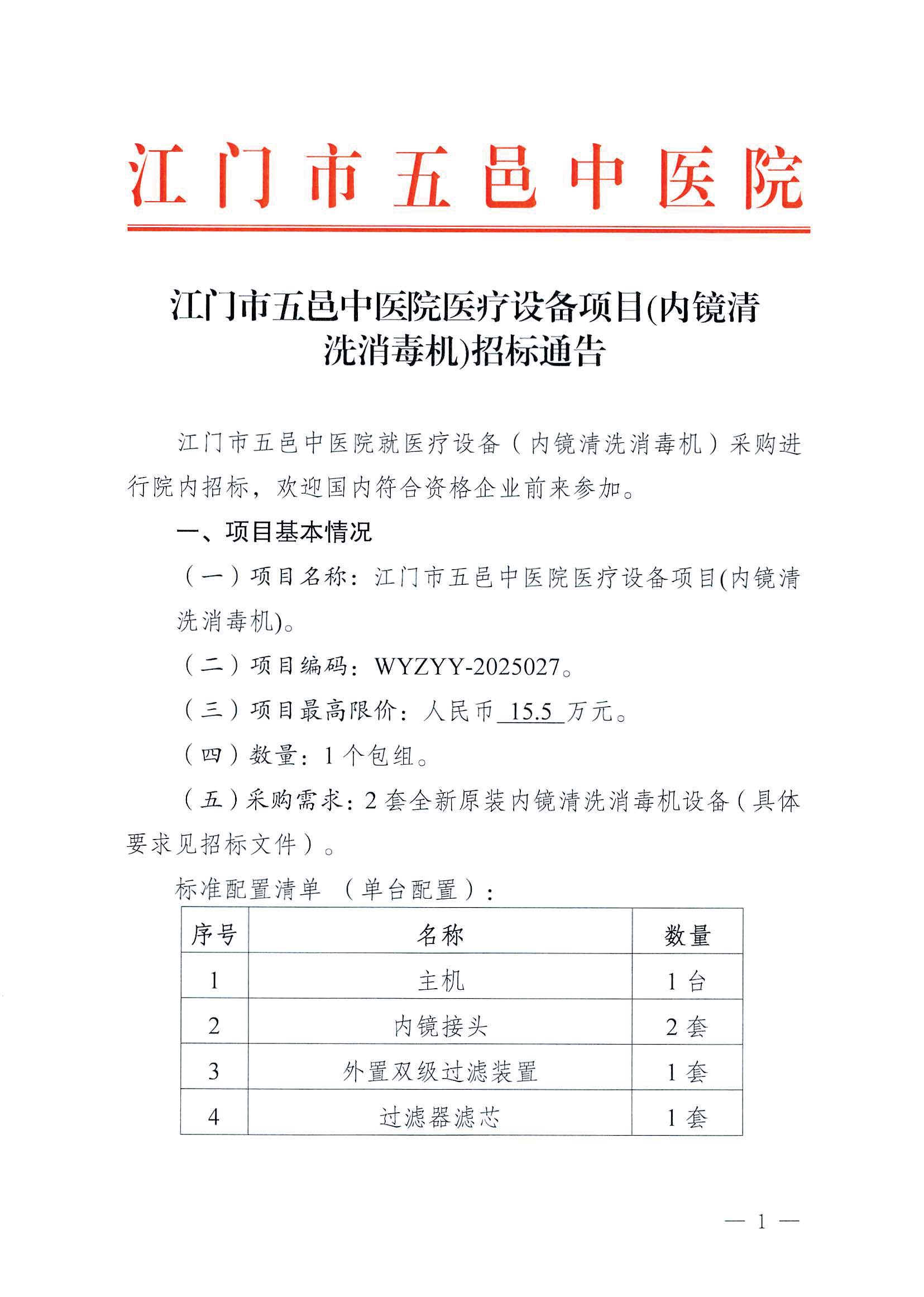 江门市五邑中医院医疗设备项目(内镜清洗消毒机)招标通告