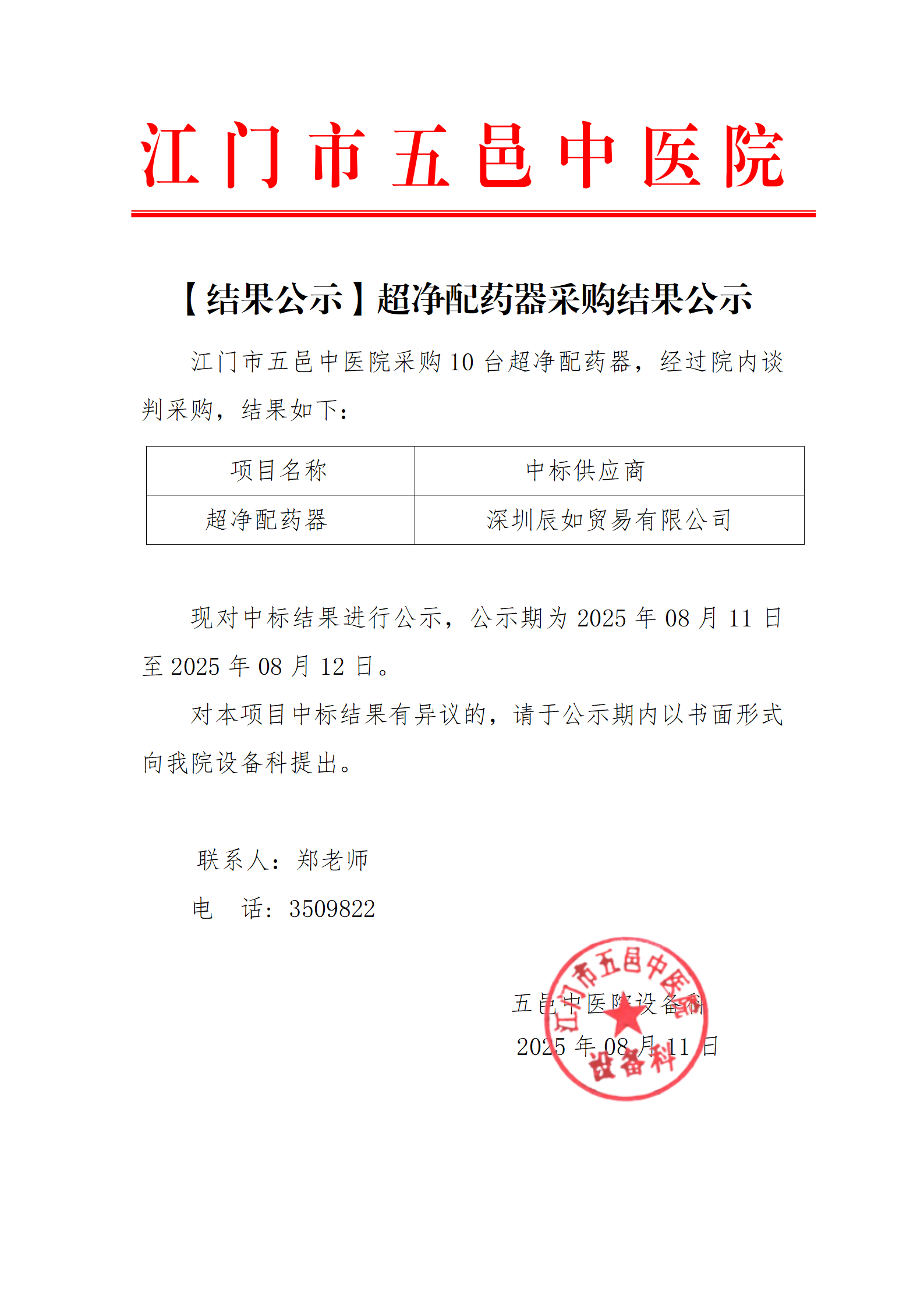 医疗设备采购结果公示-超净配药器