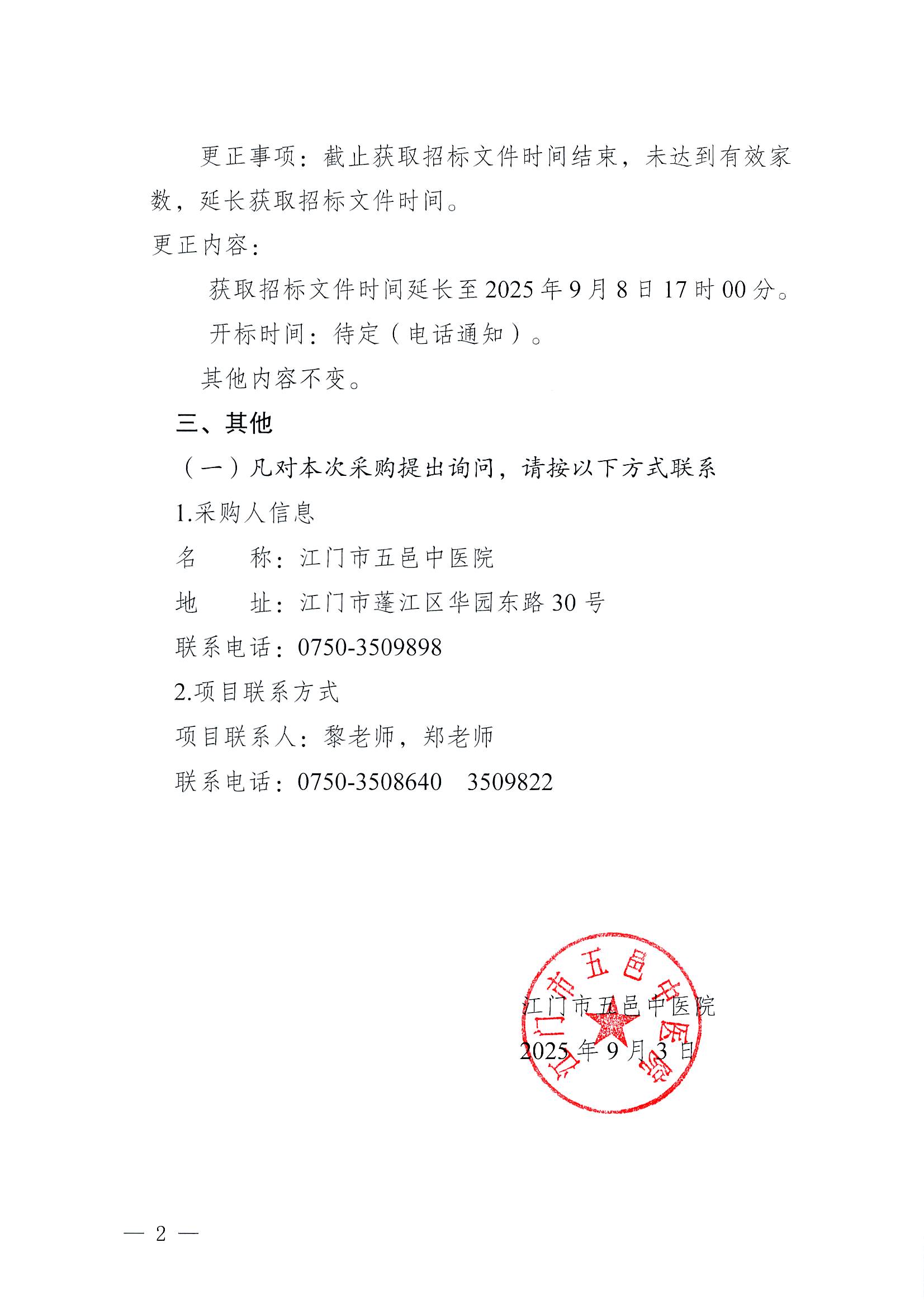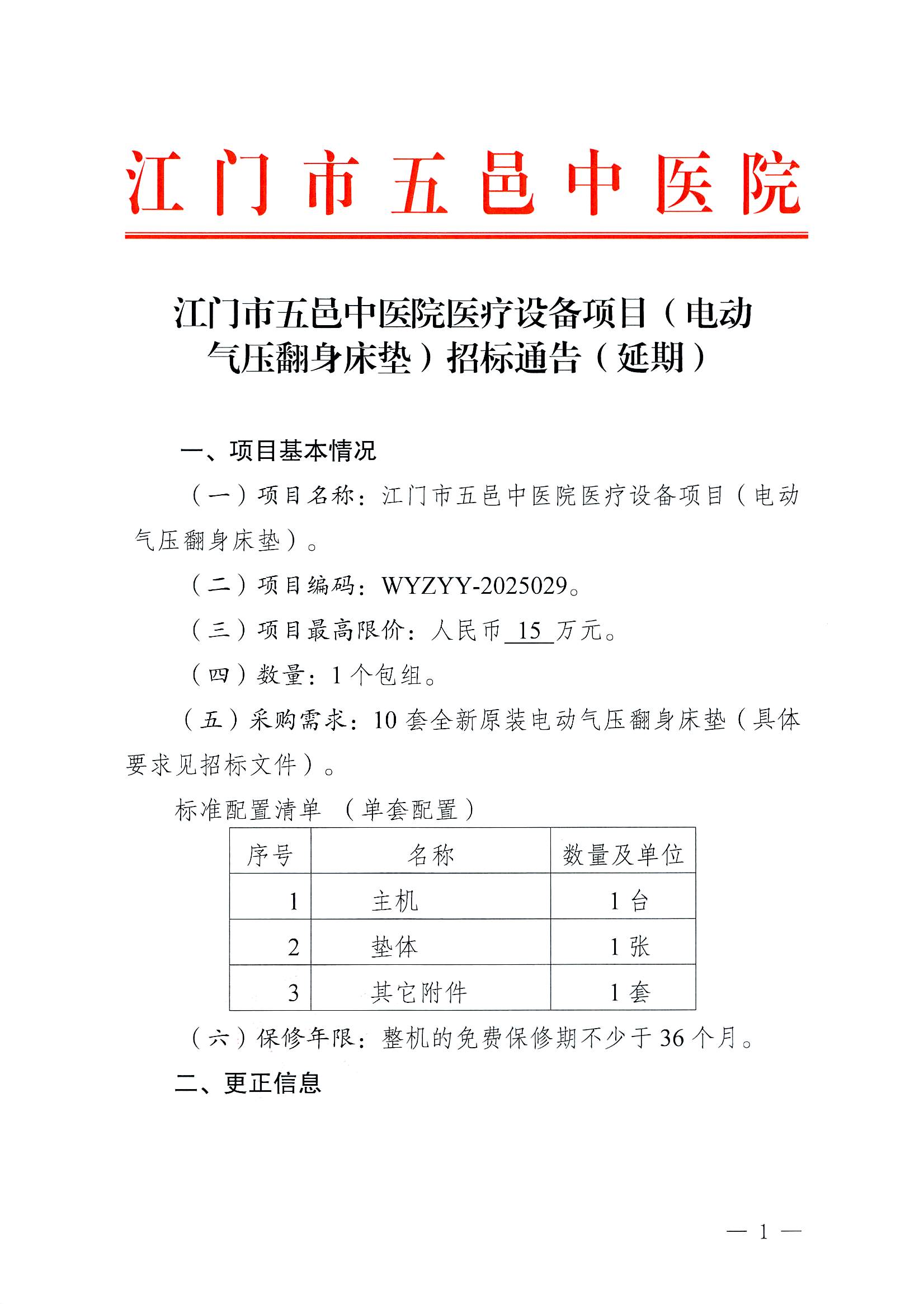 江门市五邑中医院医疗设备项目(电动气压翻身床垫)招标通告(延期)