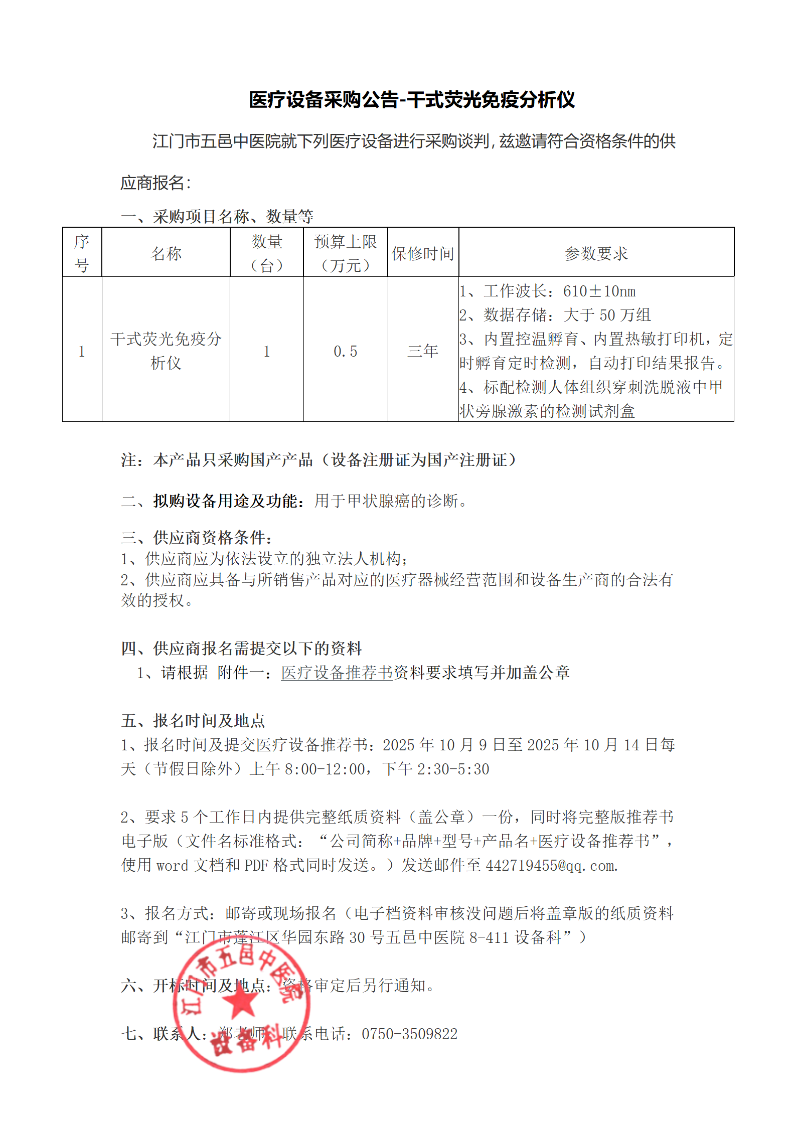 附件一五邑中医院医疗设备推荐书模板 .docx