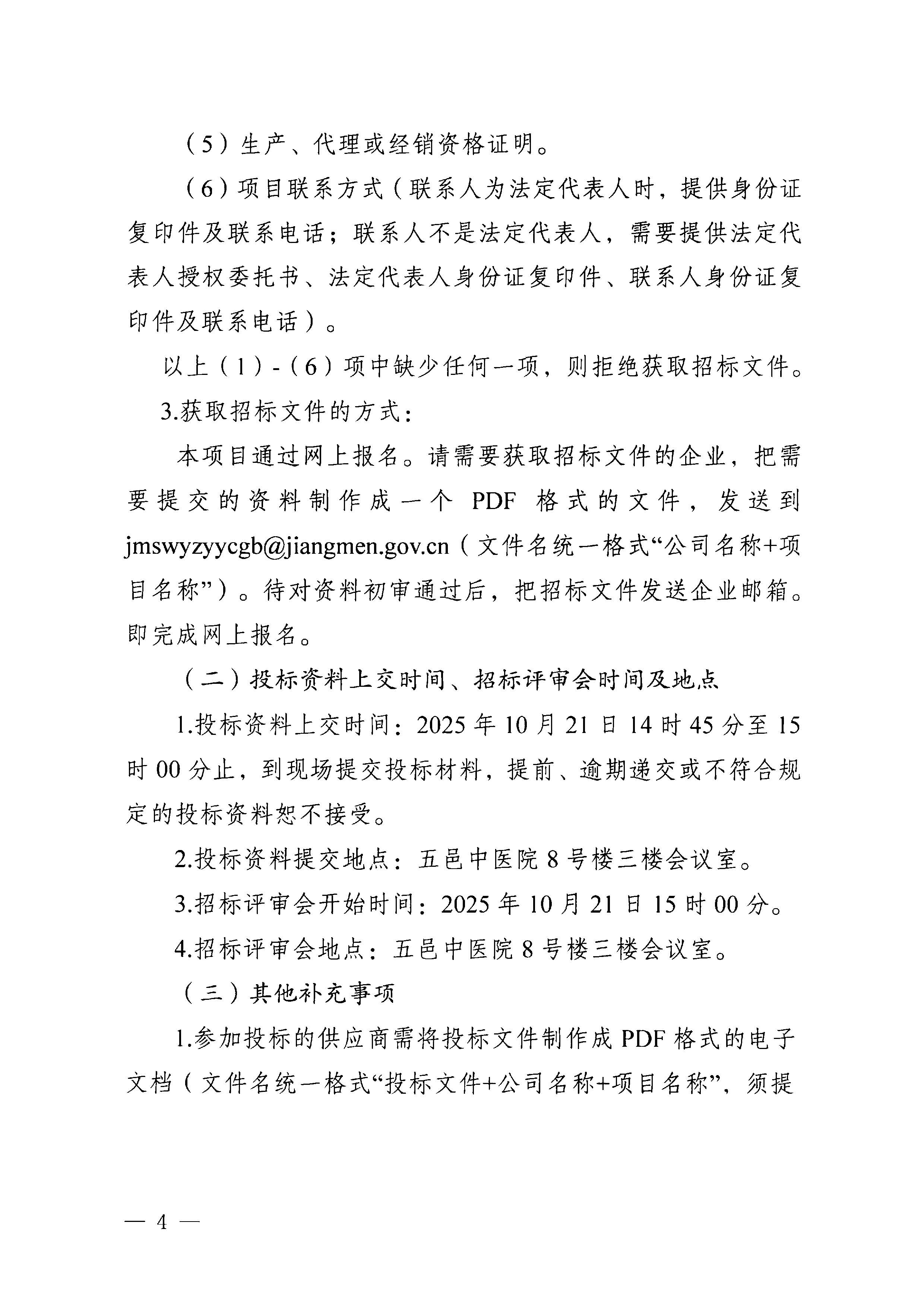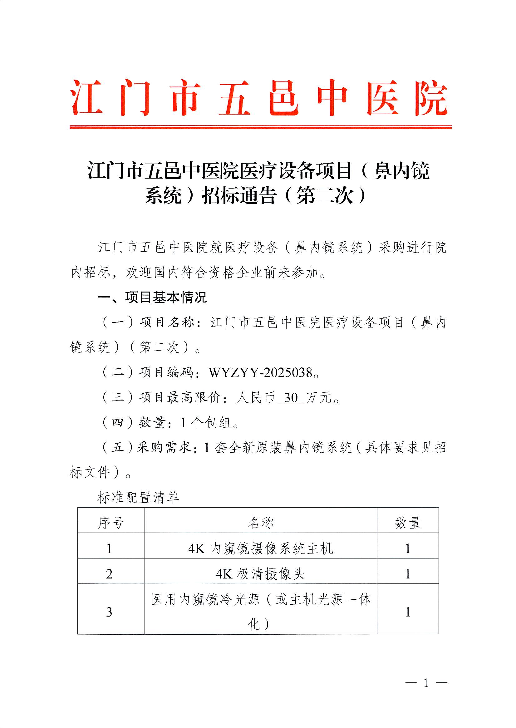 江门市五邑中医院医疗设备项目(鼻内镜系统)招标通告(第二次)