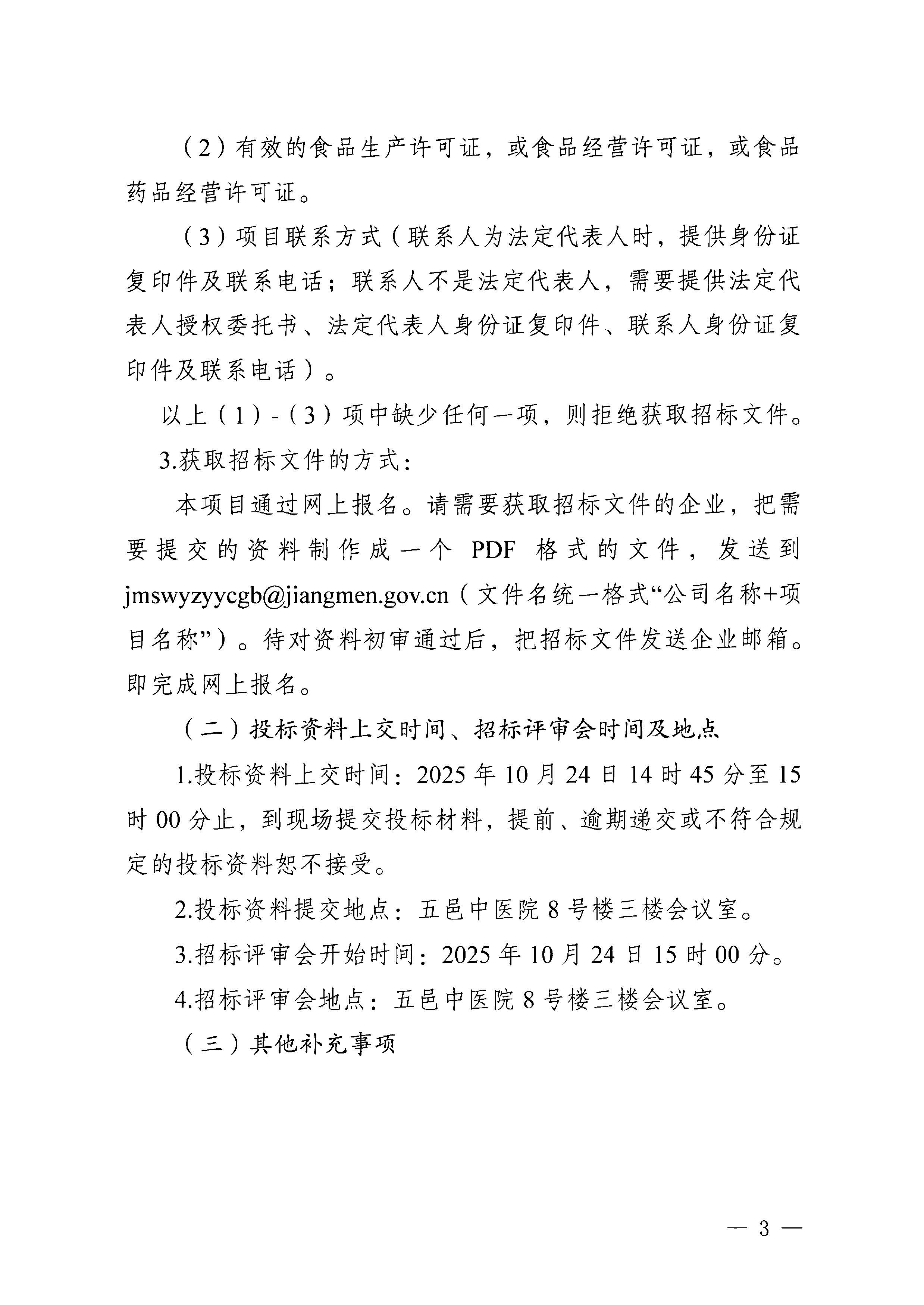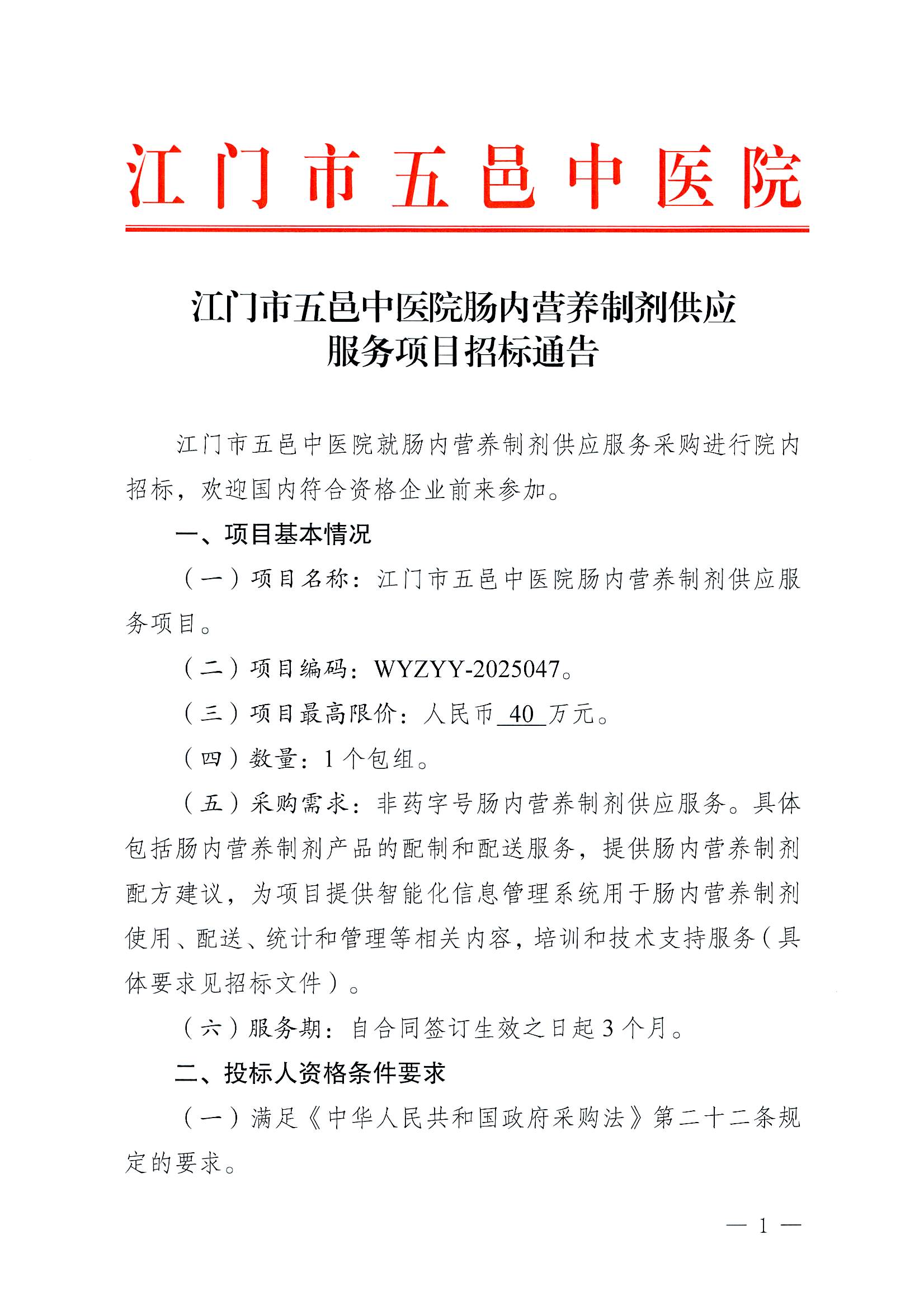 江门市五邑中医院肠内营养制剂供应服务项目招标通告
