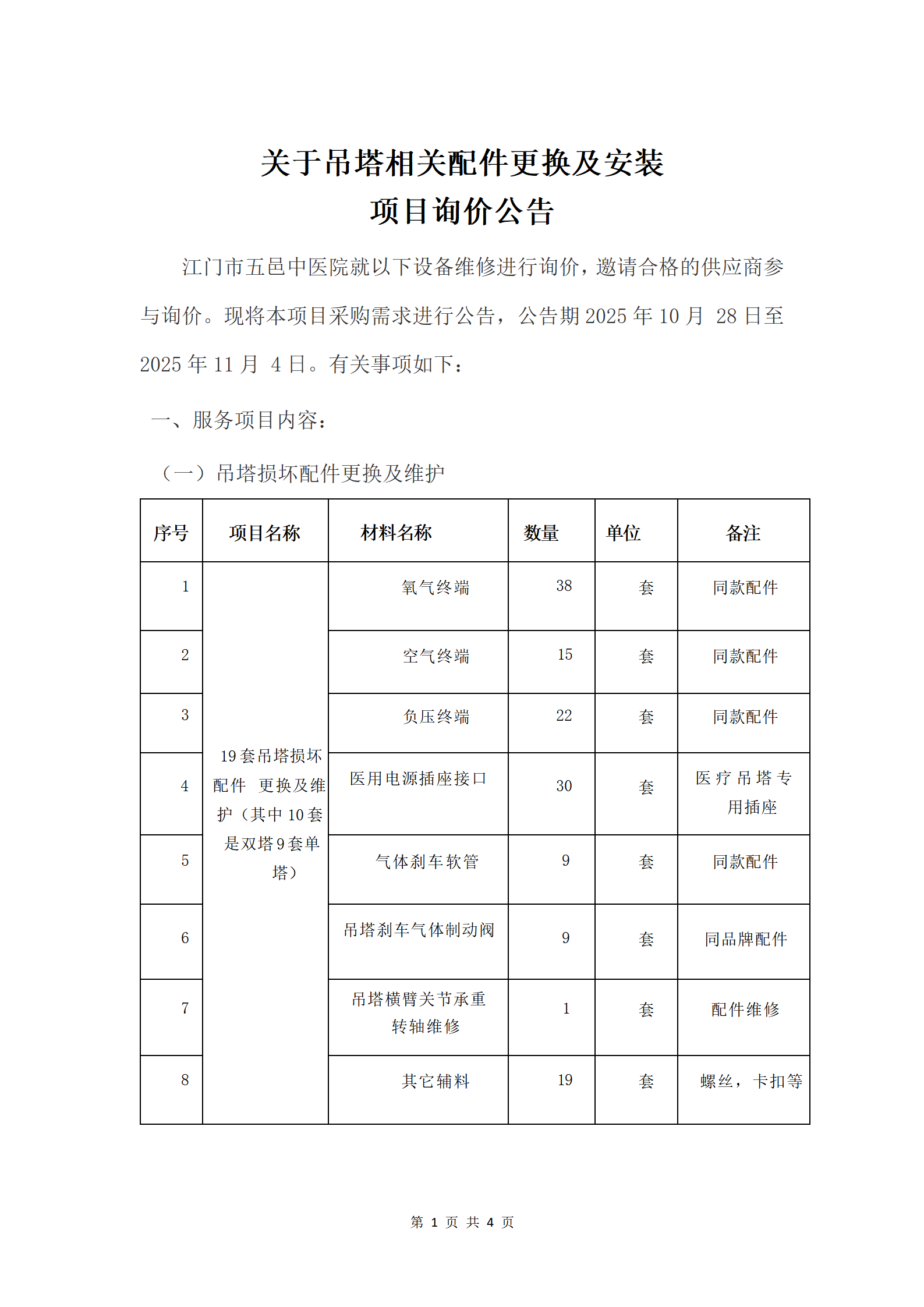 关于吊塔相关配件更换及安装项目询价公告