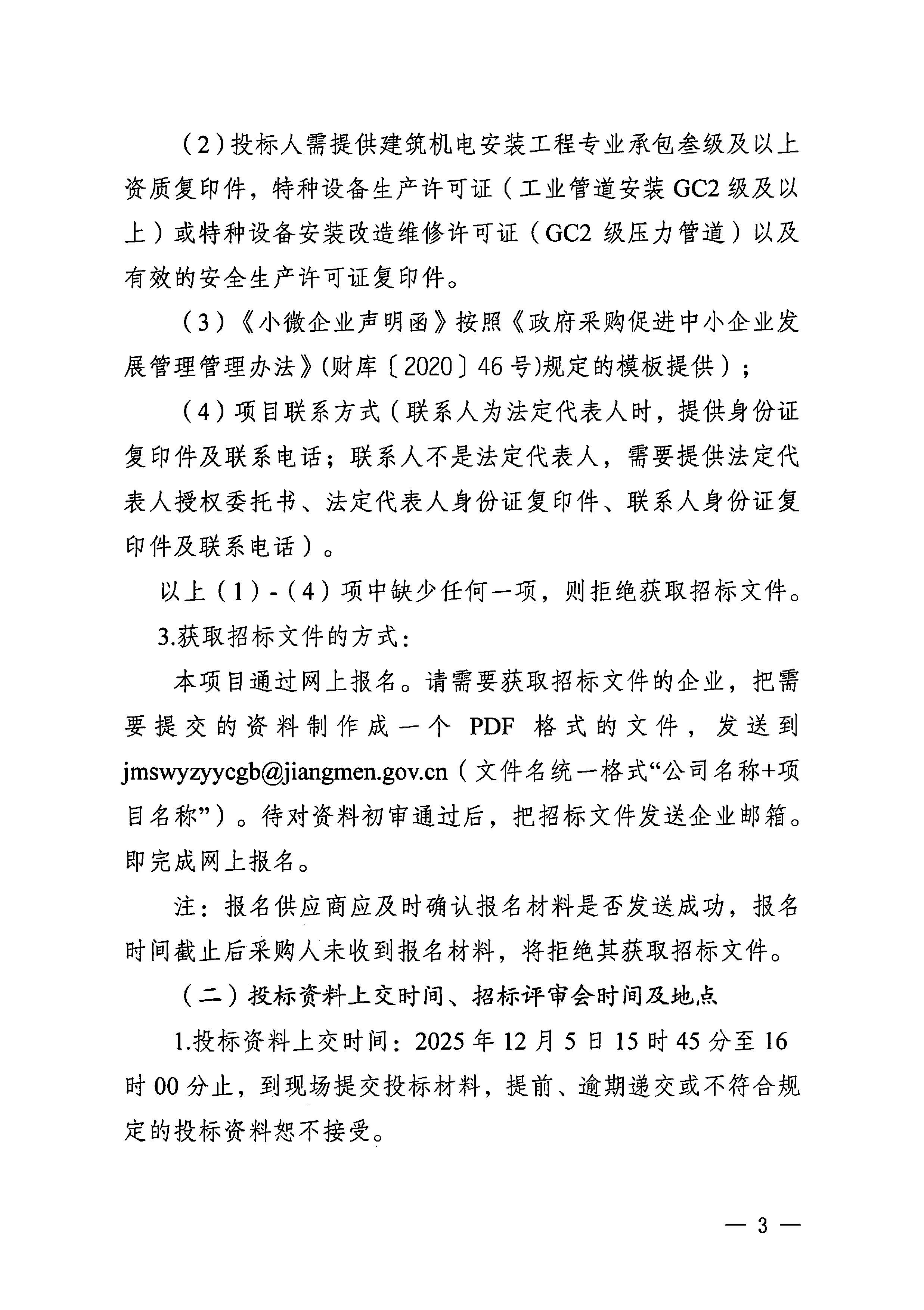 江门市五邑中医院16号楼氧气管道改建项目招标通告