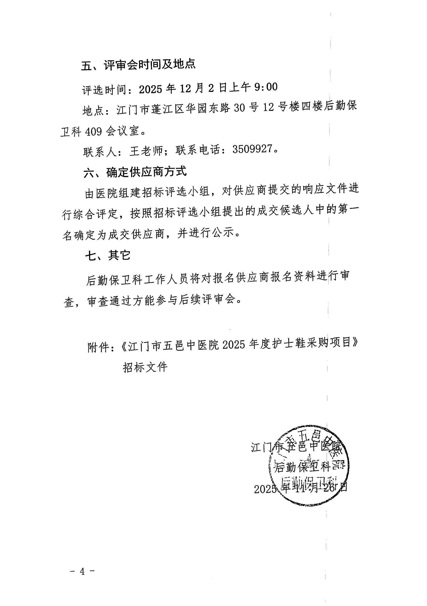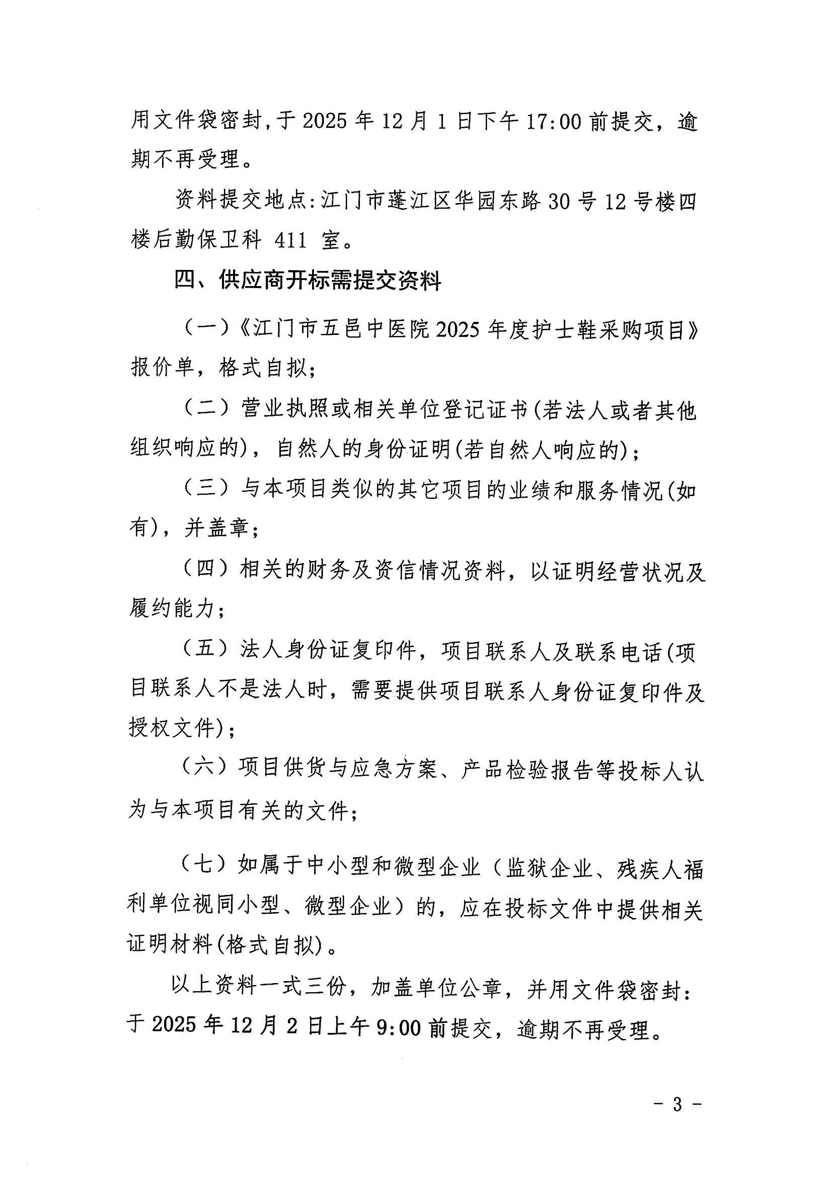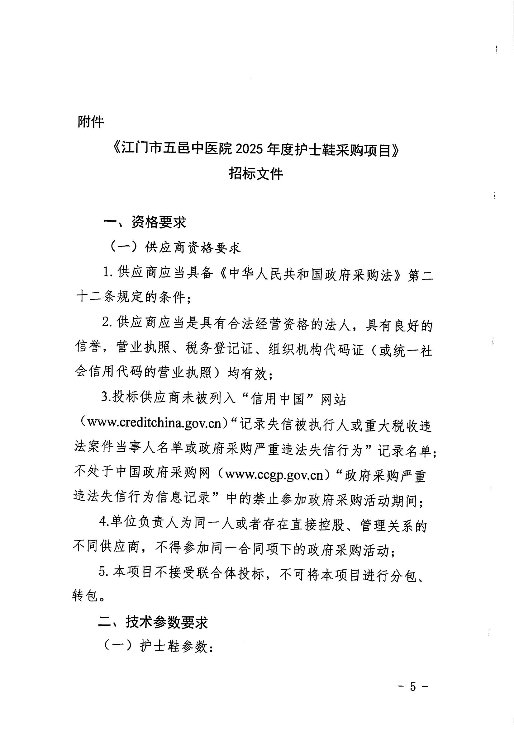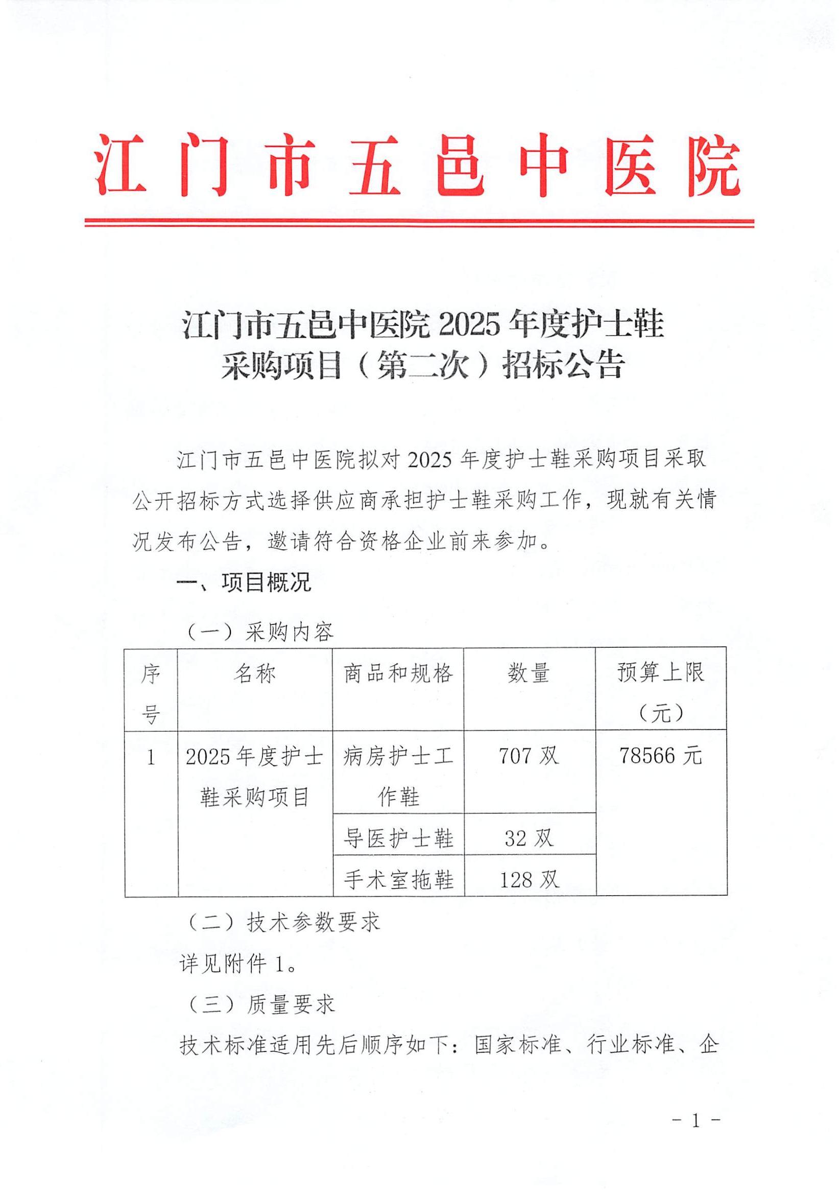 江门市五邑中医院2025年护士鞋采购项目(第二次)招标公告
