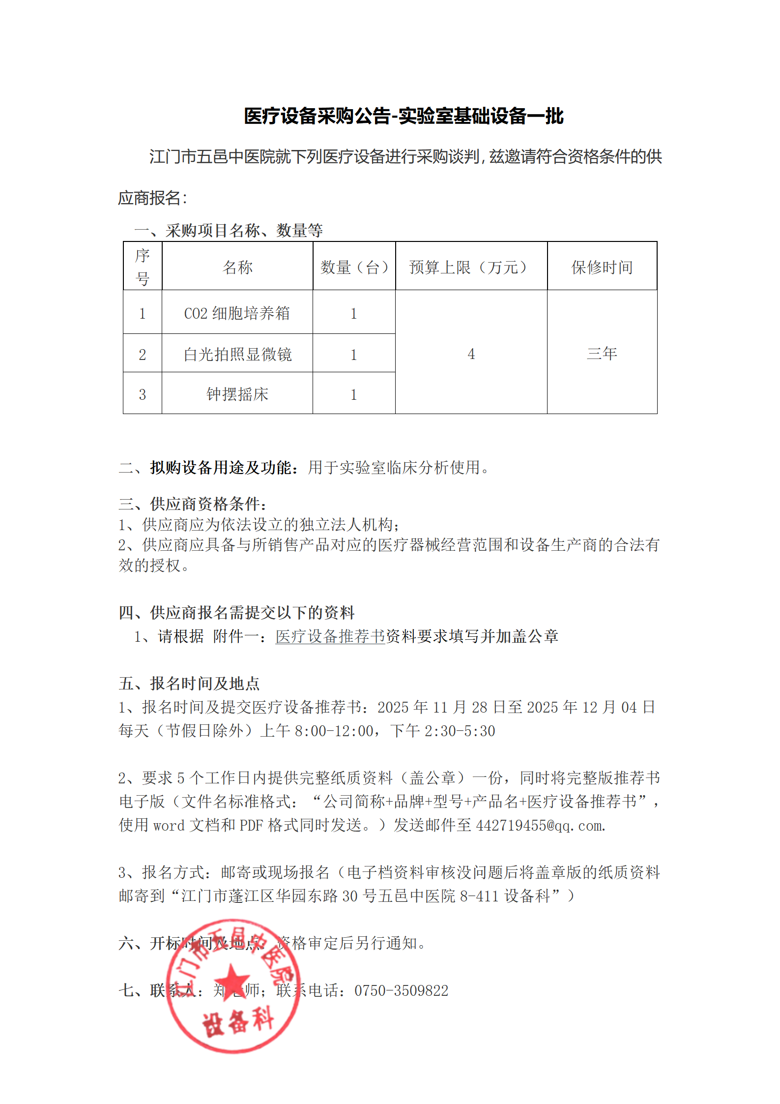 附件一五邑中医院医疗设备推荐书模板 .docx