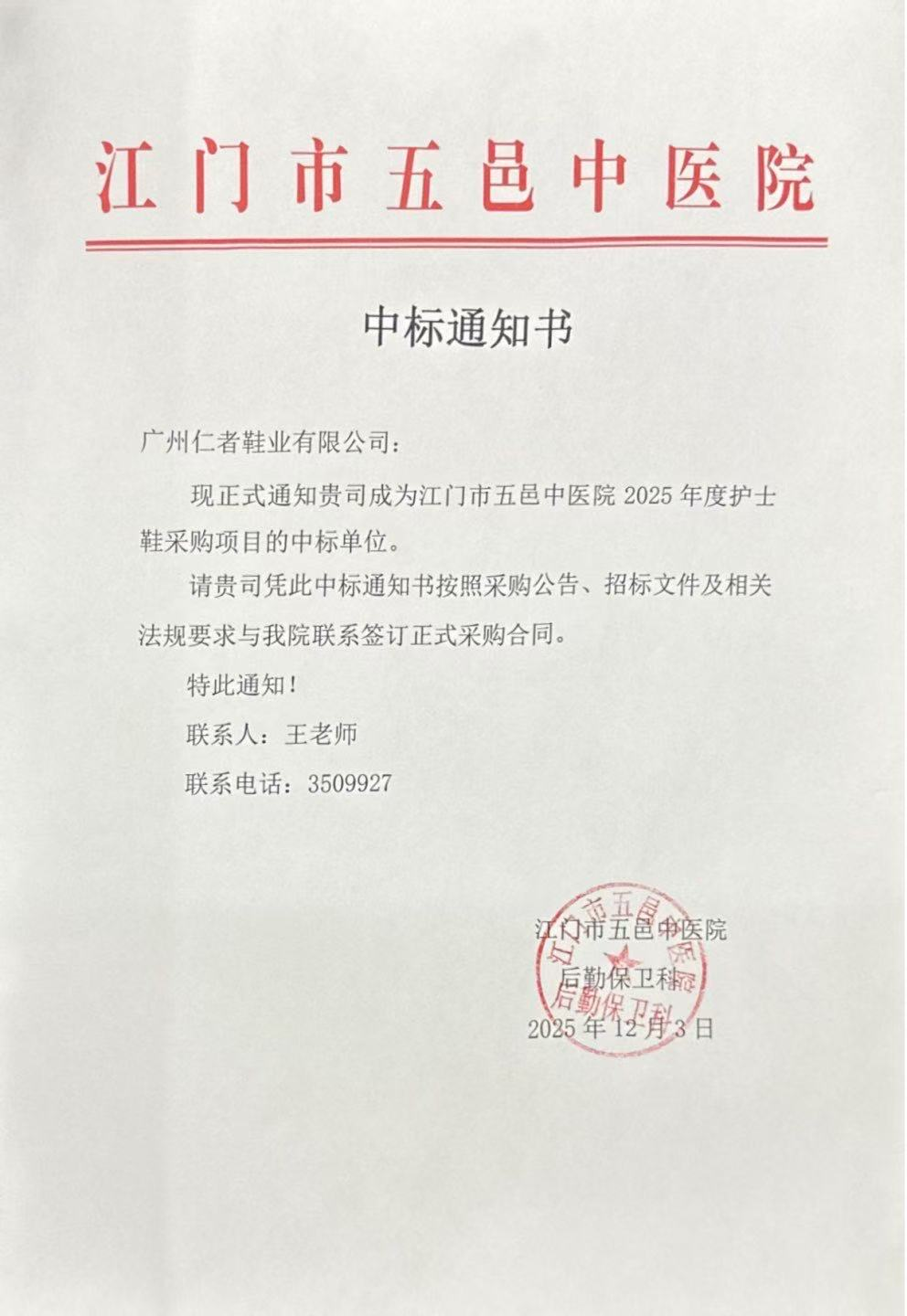 江门市五邑中医院2025年度护士鞋采购项目中标通知