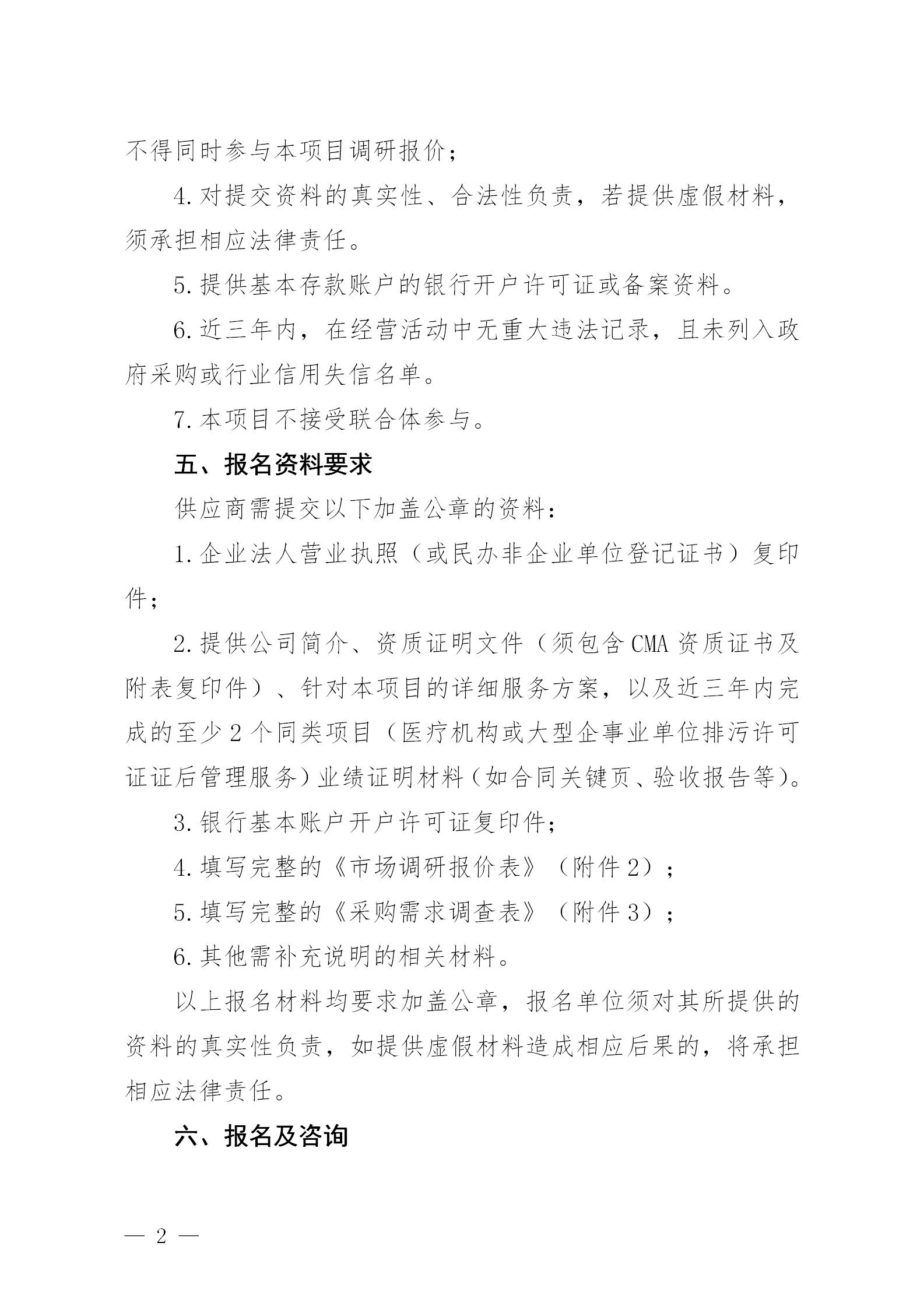 江门市五邑中医院2026年度环保(污水处理)证管理服务项目市场调研公告