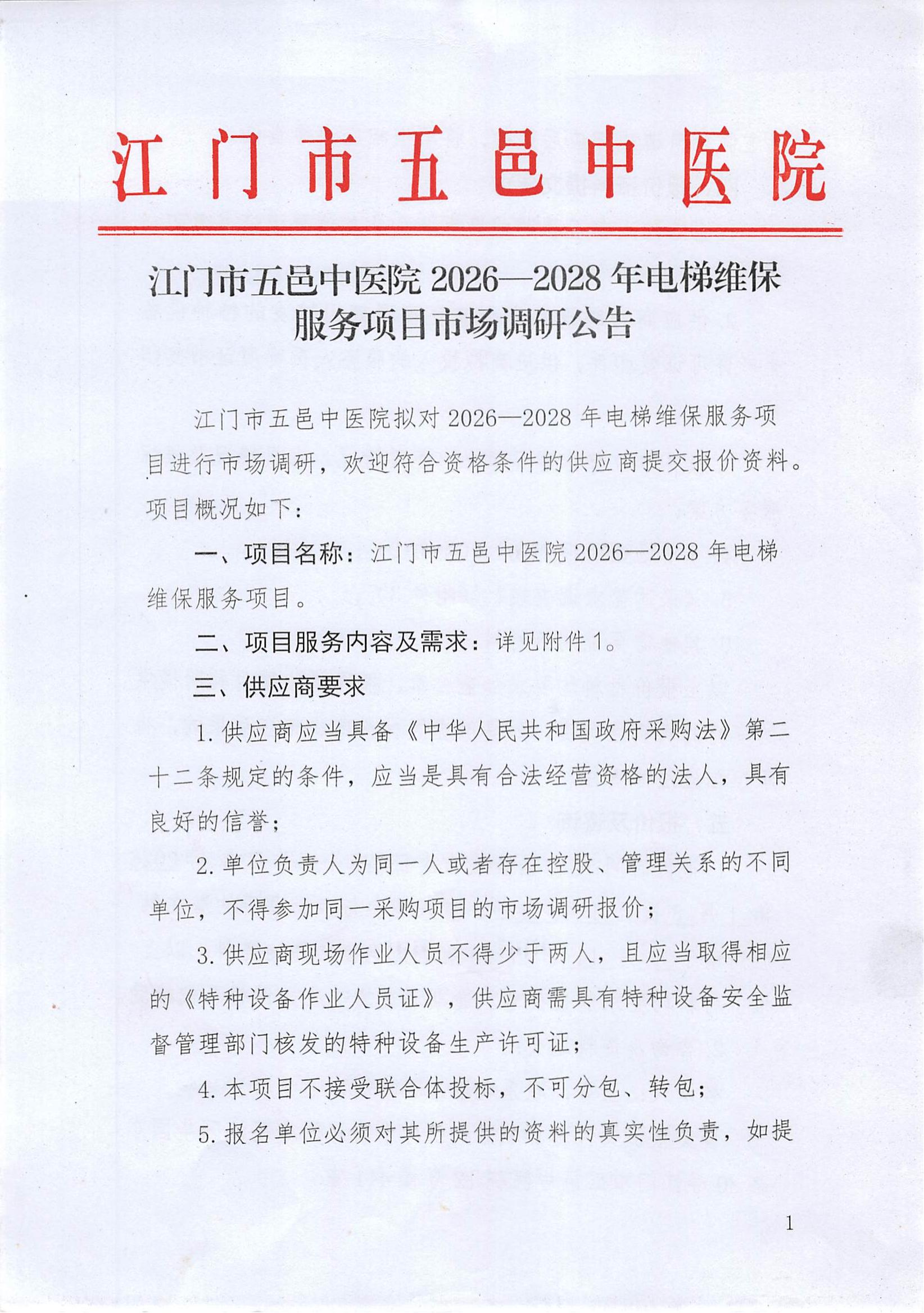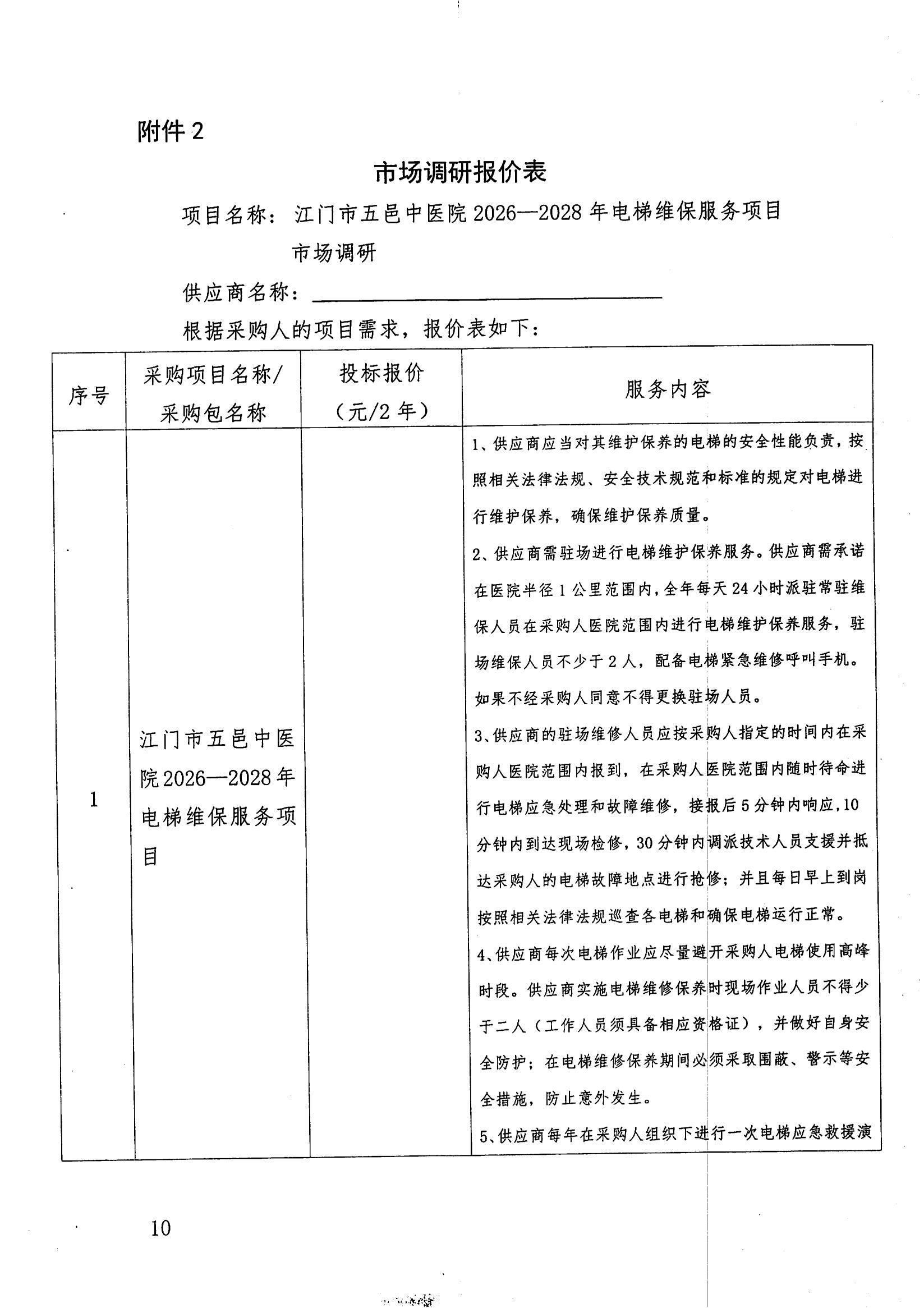 2026-2028年电梯维保服务项目市场调研公告
