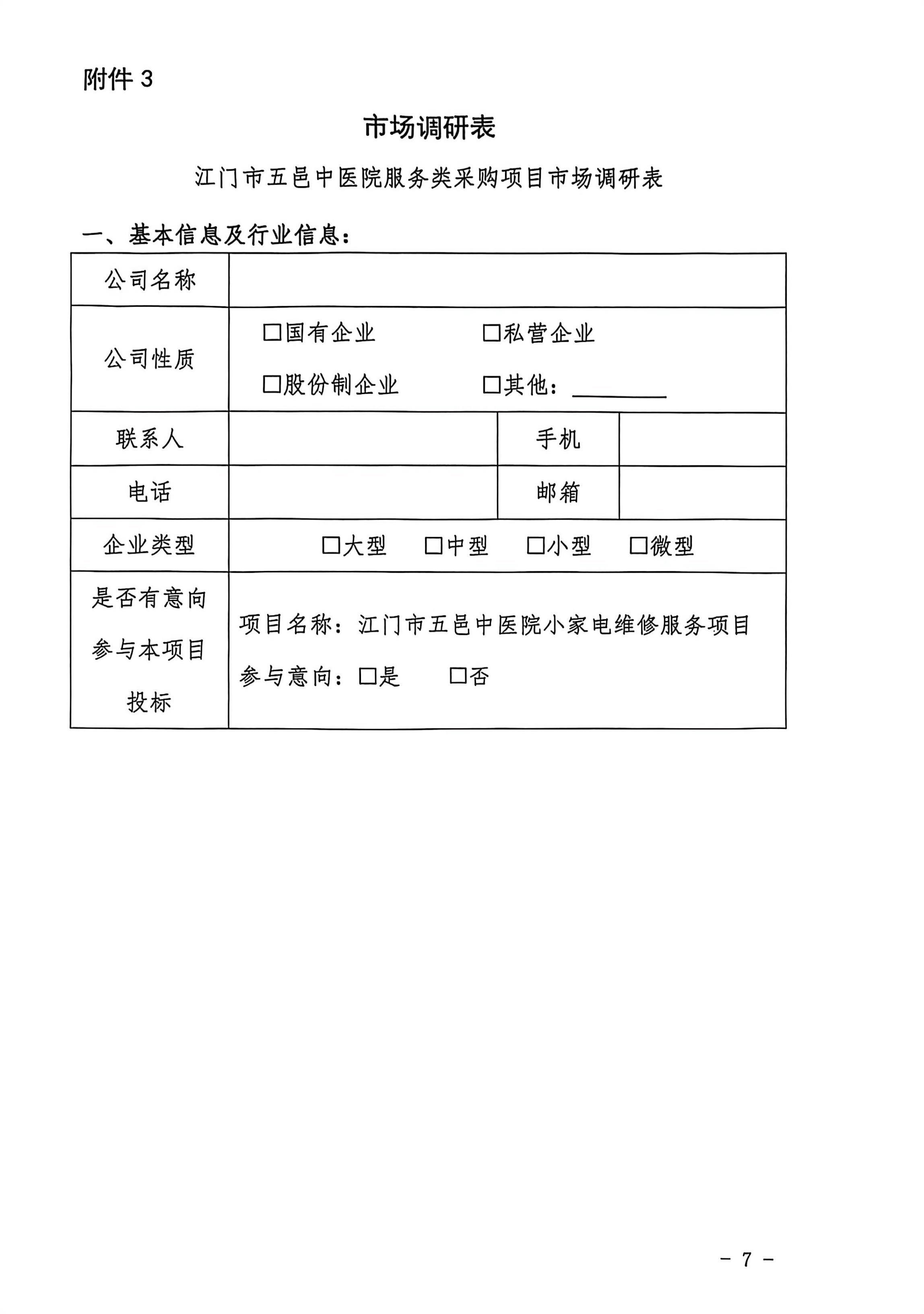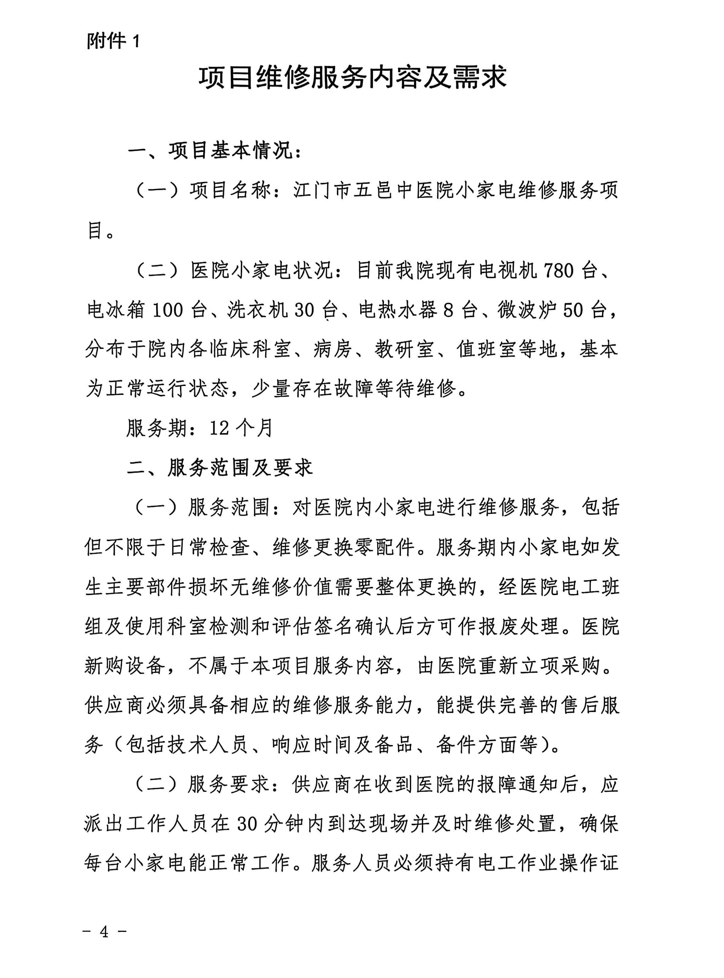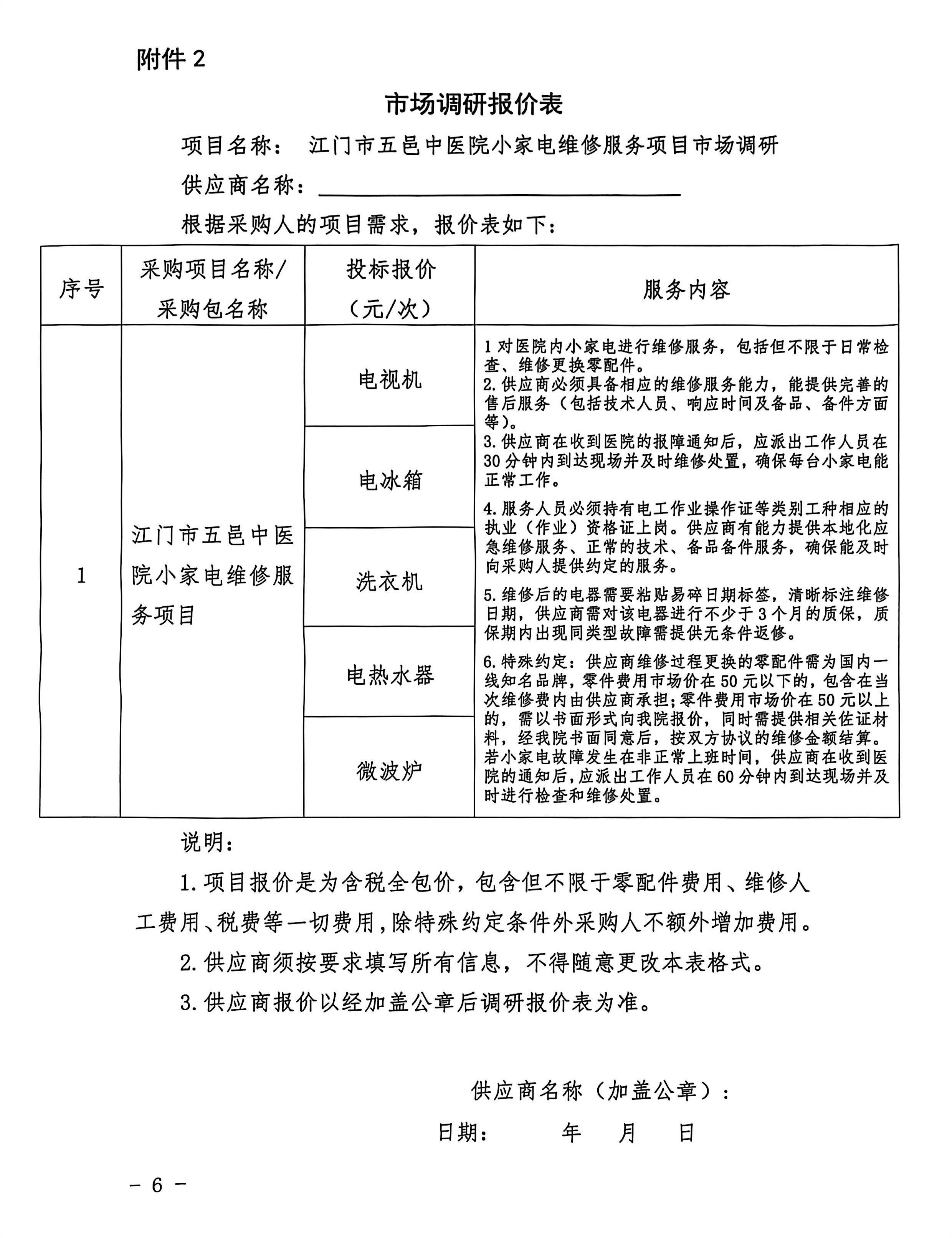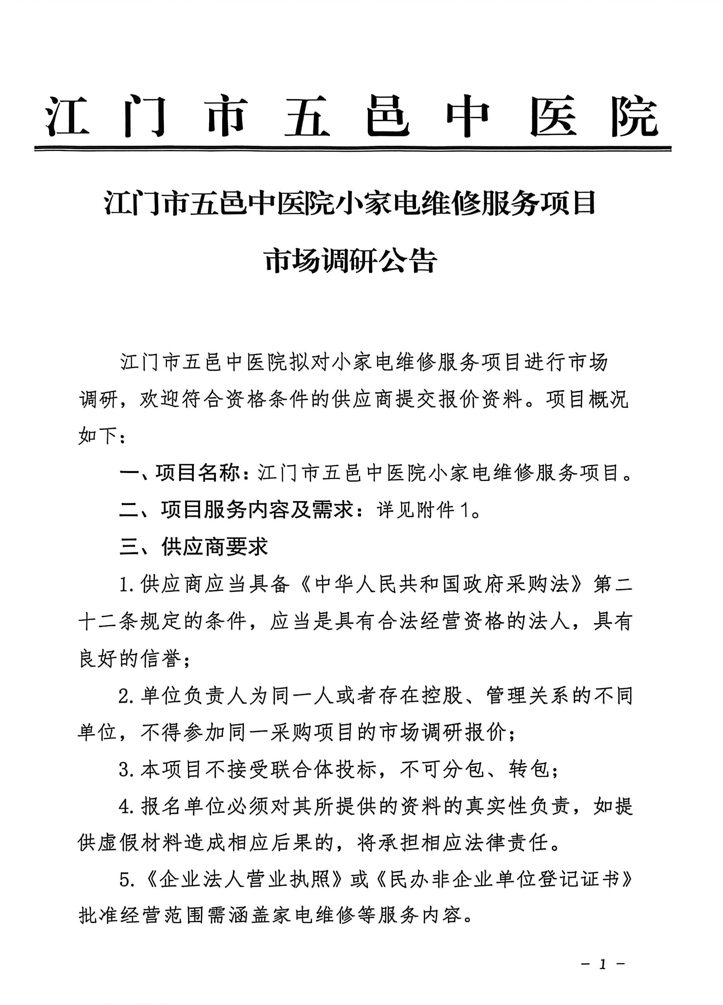 江门市五邑中医院小家电维修服务项目市场调研公告
