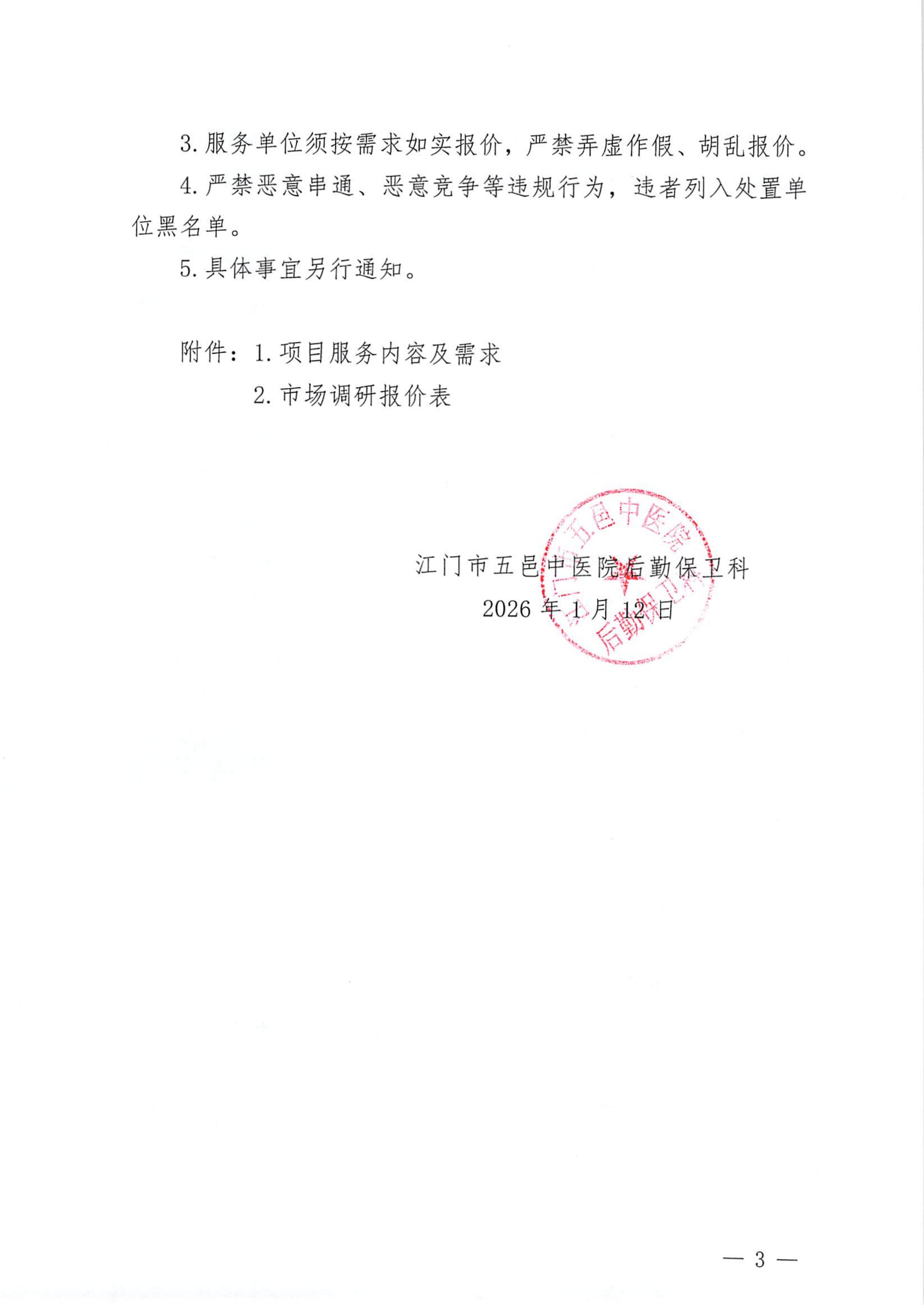 江门市五邑中医院2026—2027年医用可回收物回收处置服务项目市场调研公告(第三次)