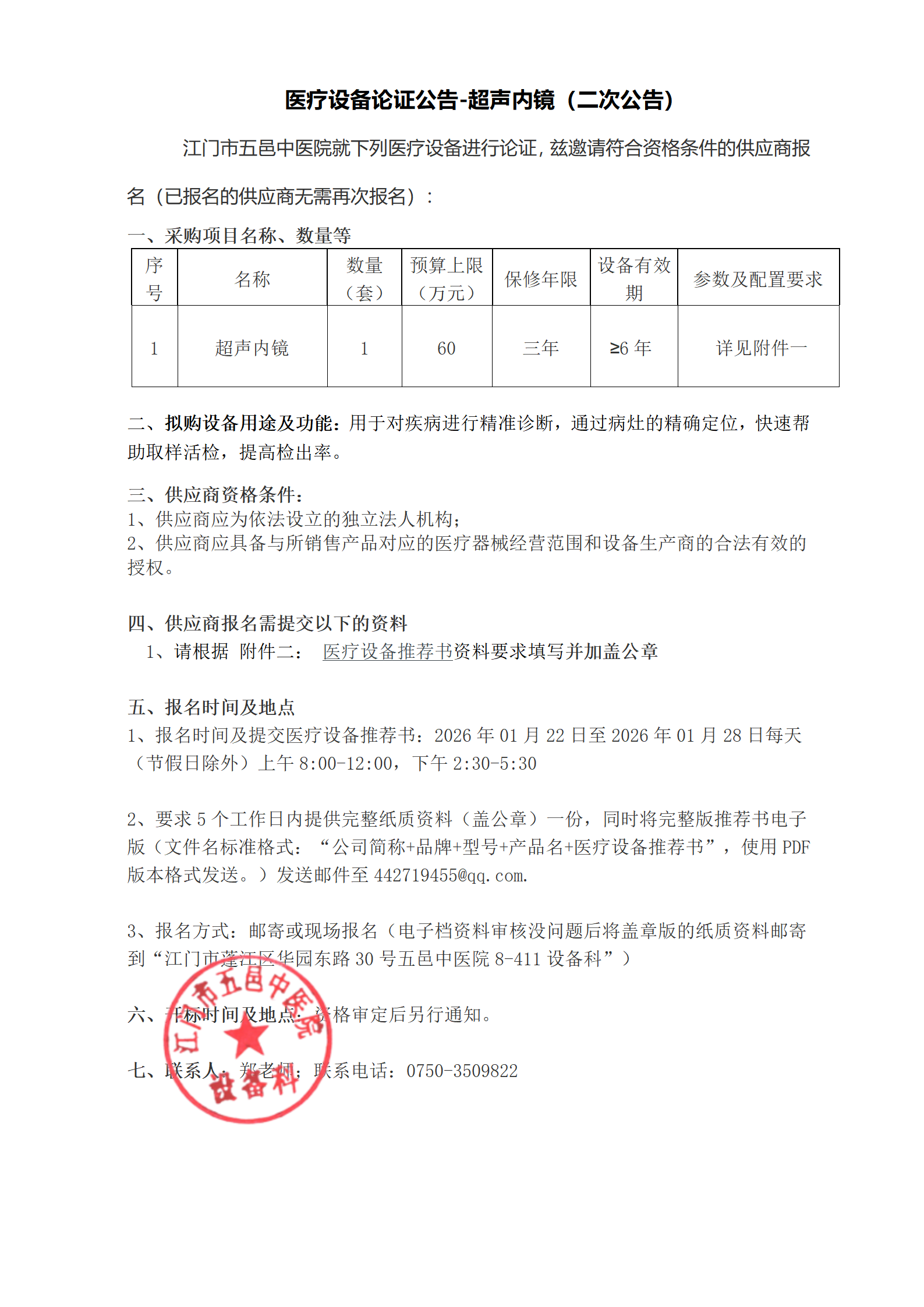 医疗设备论证公告-超声内镜(二次公告)