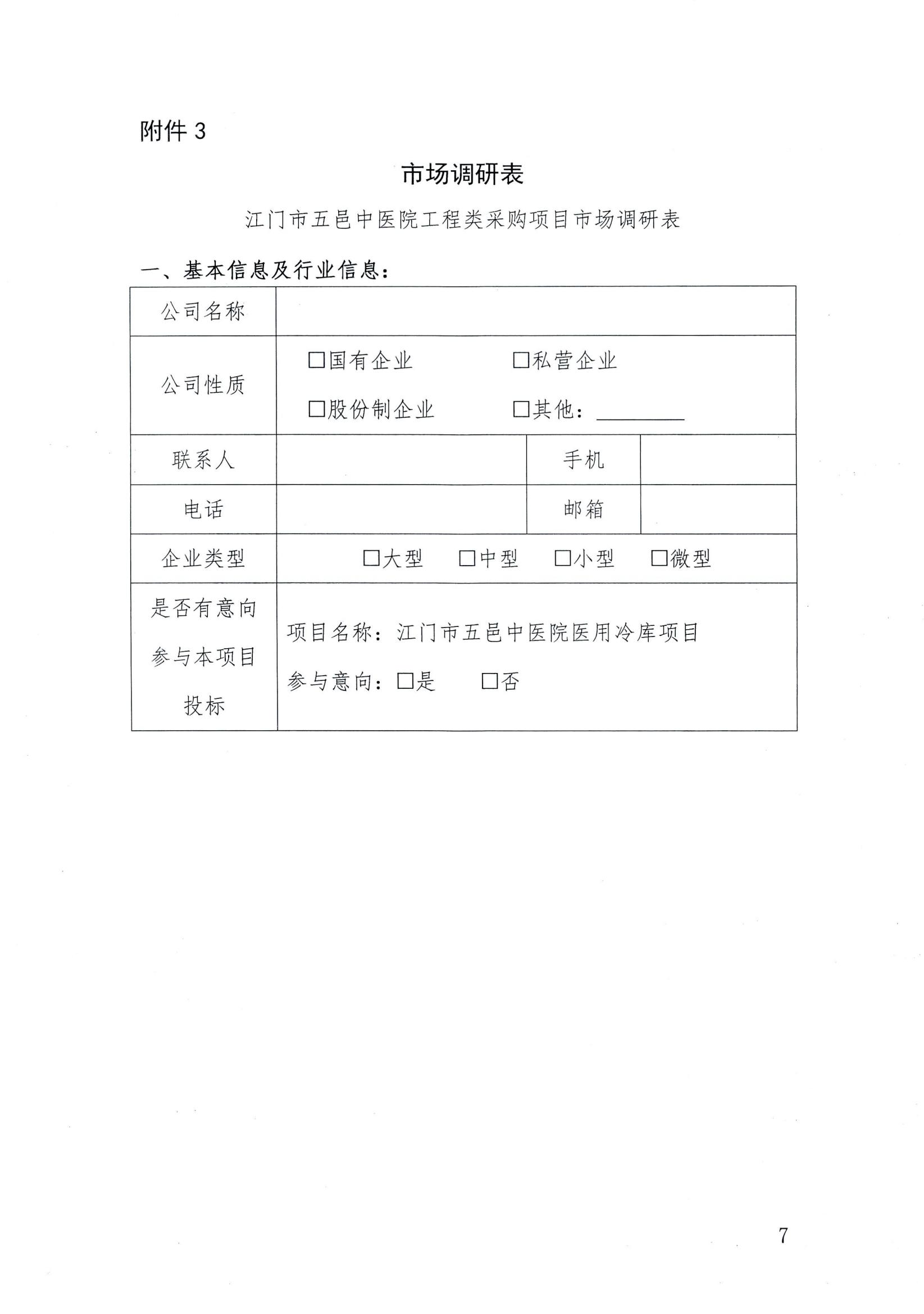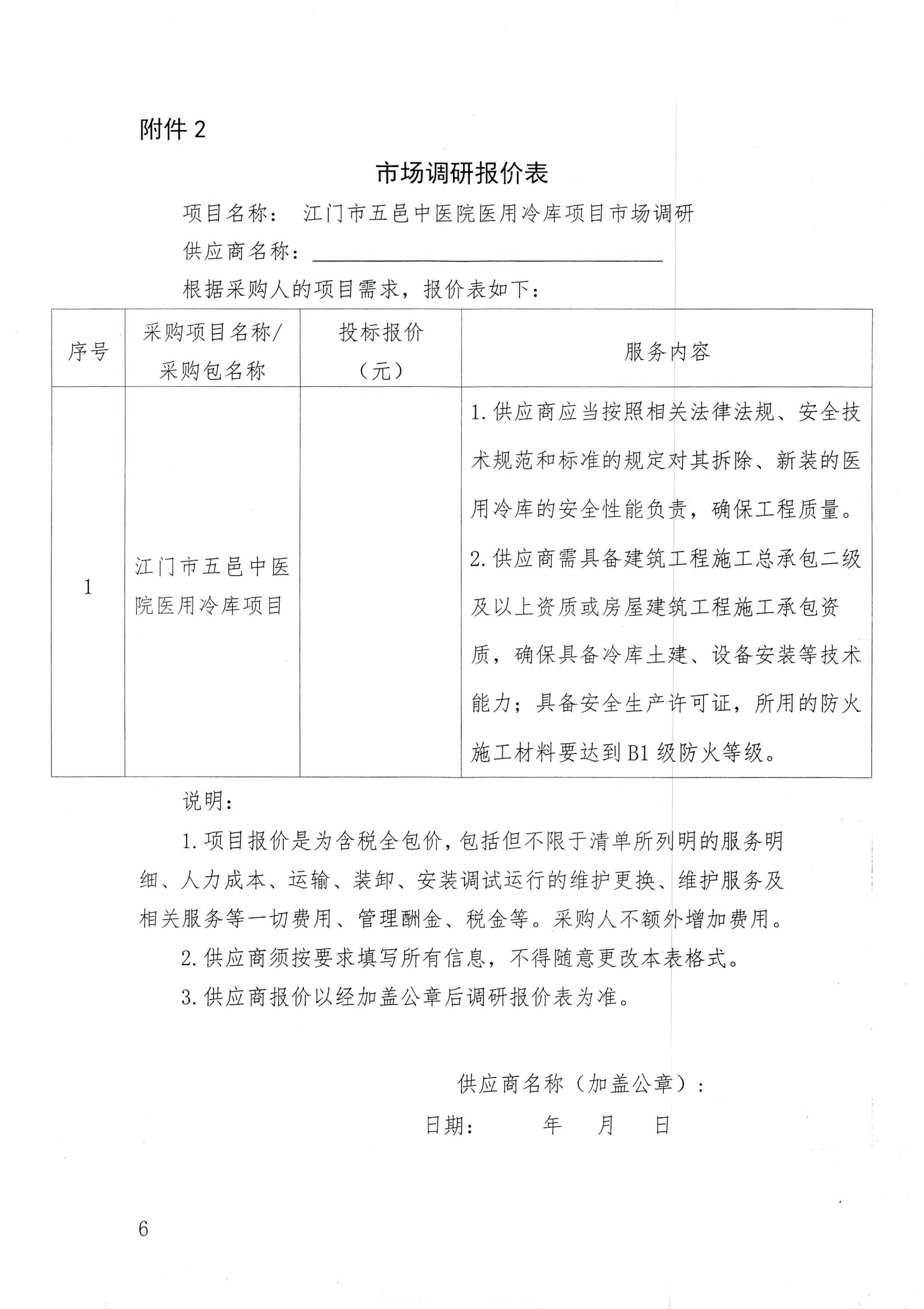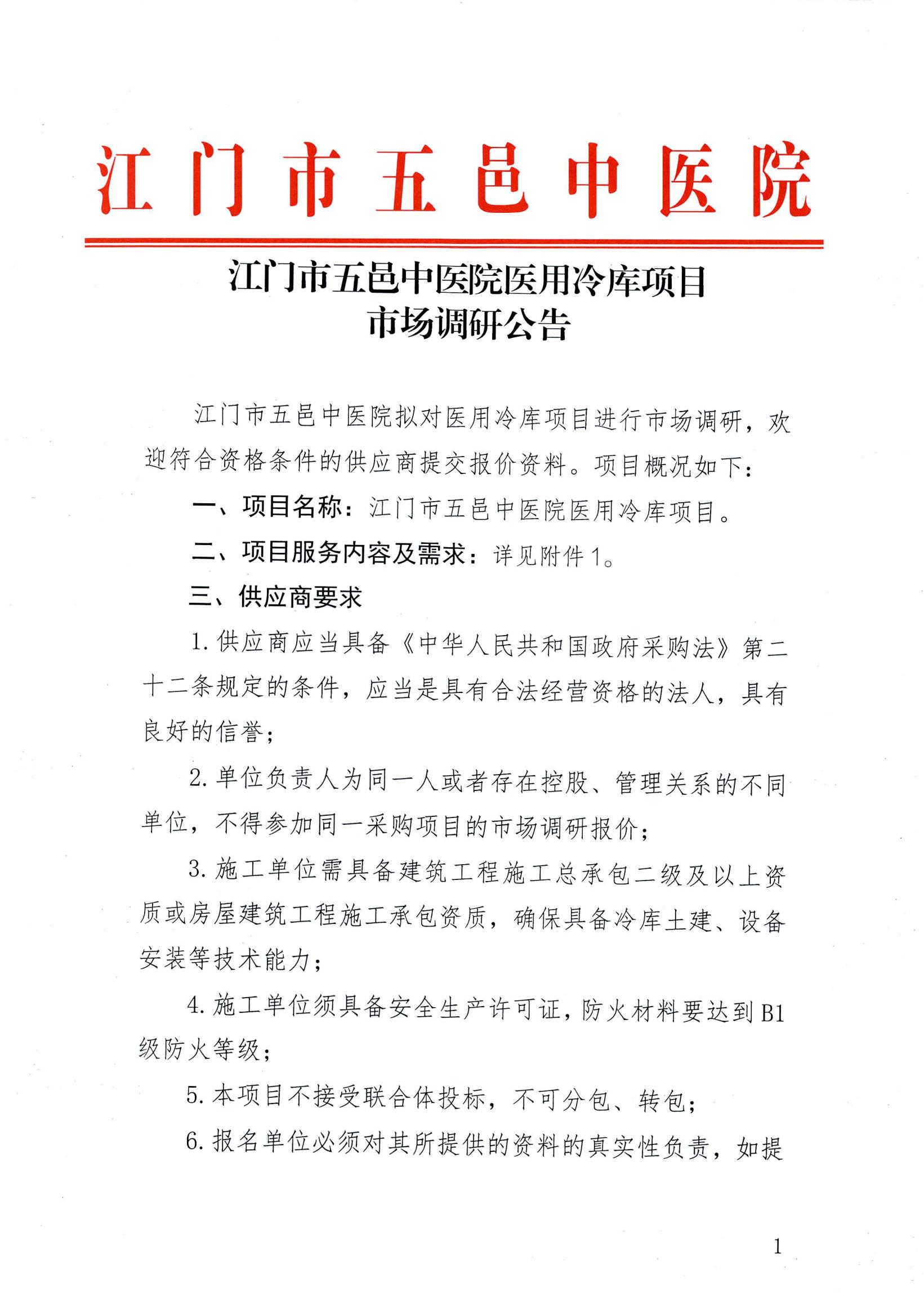 江门市五邑中医院医用冷库项目市场调研公告