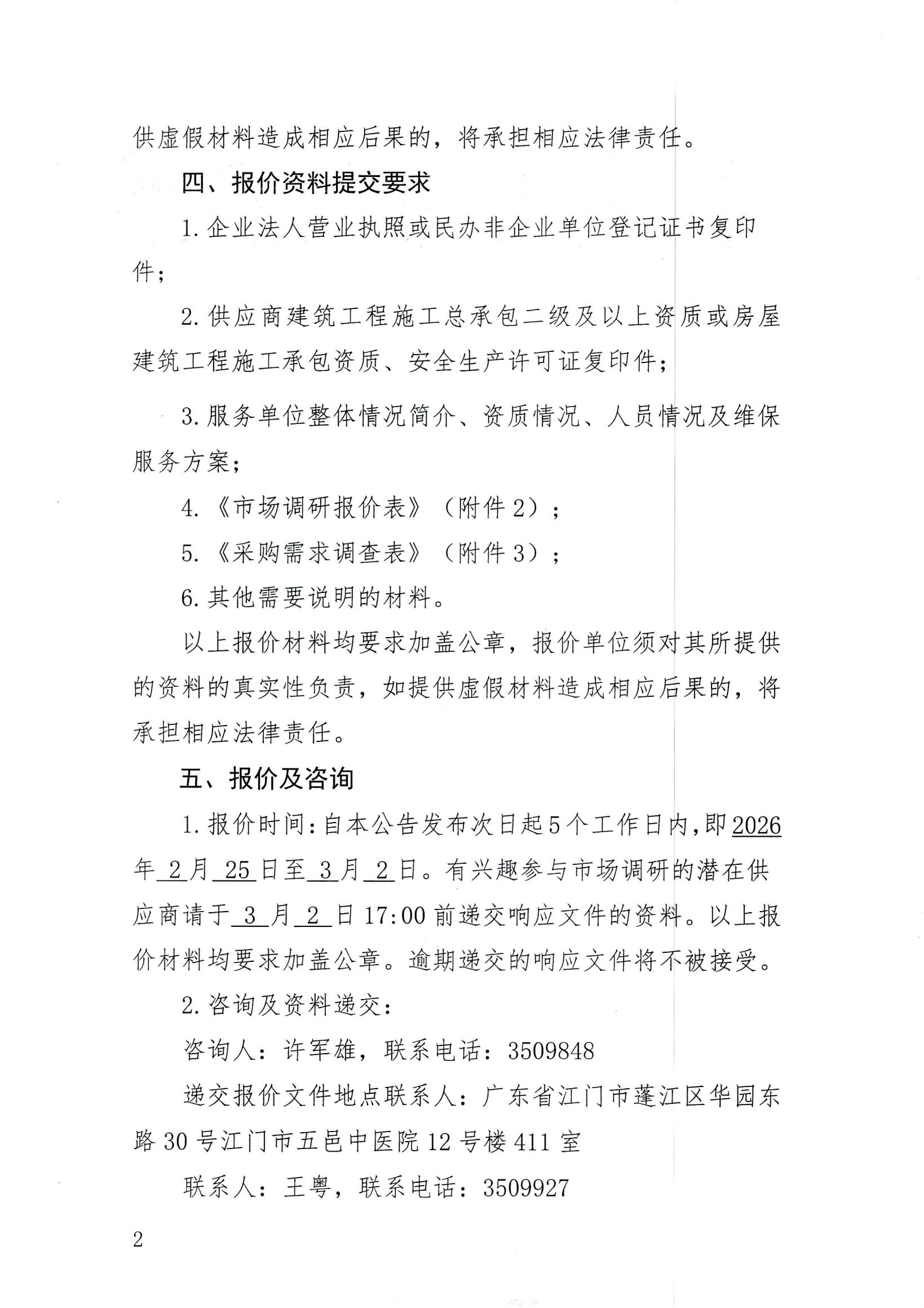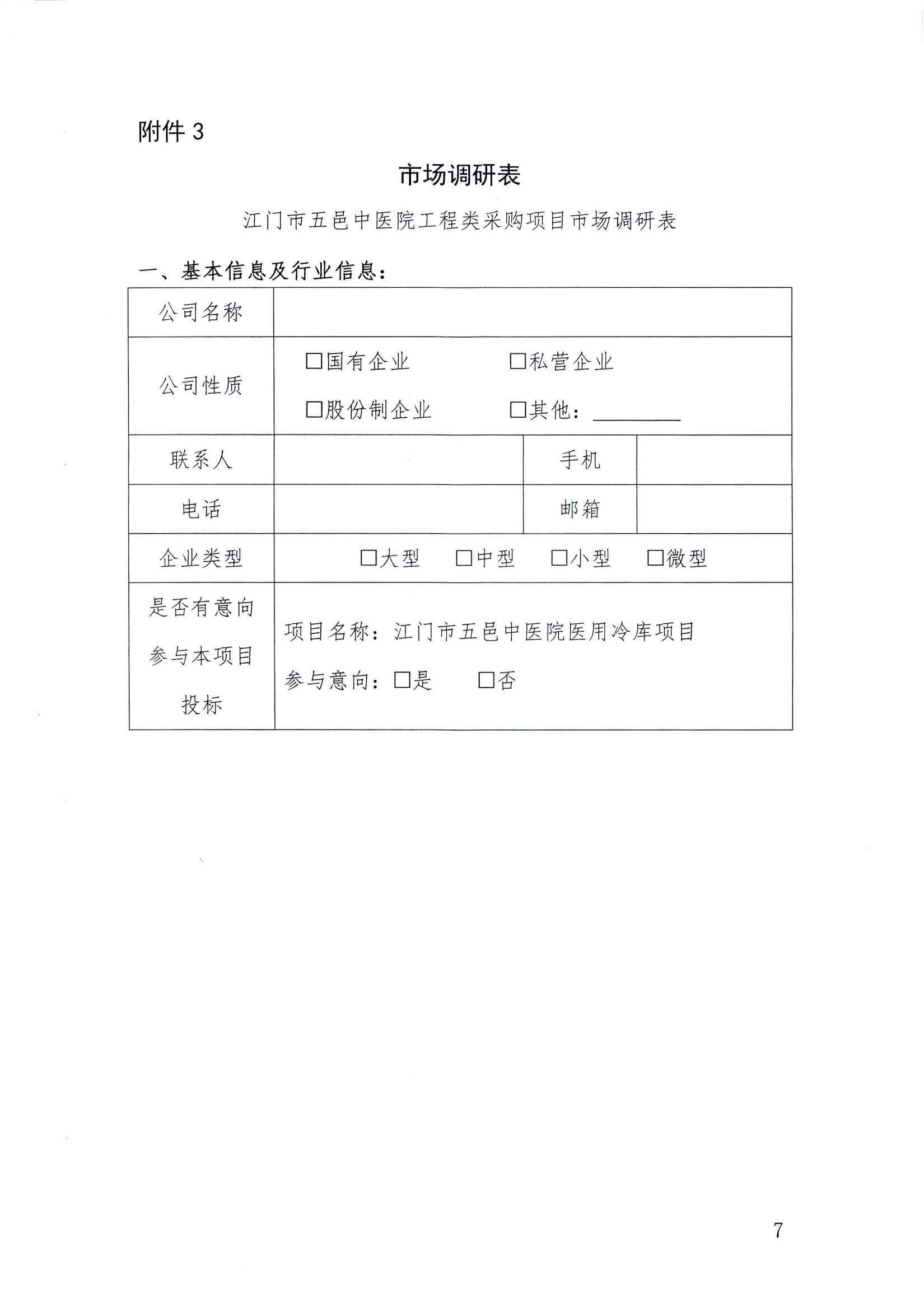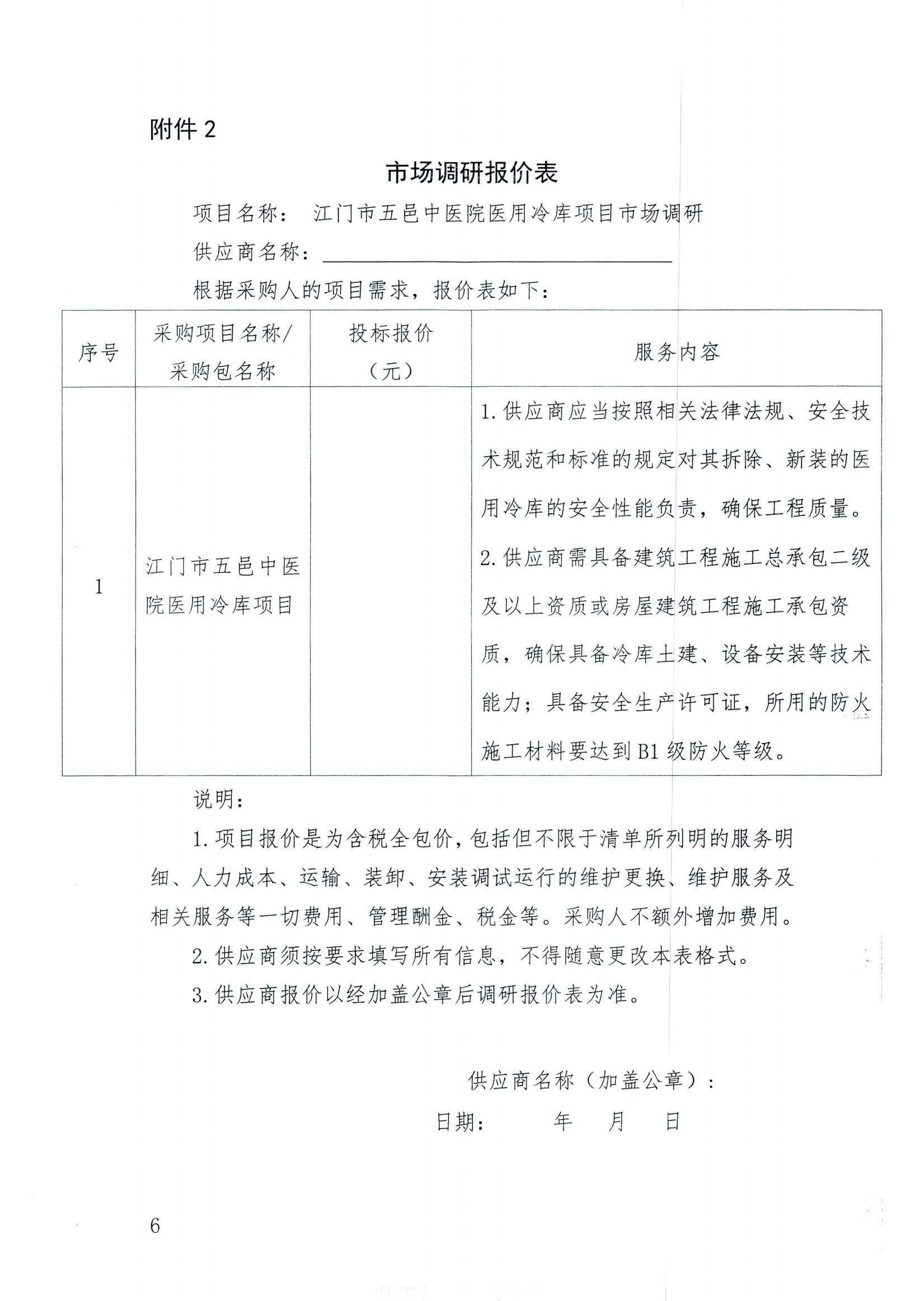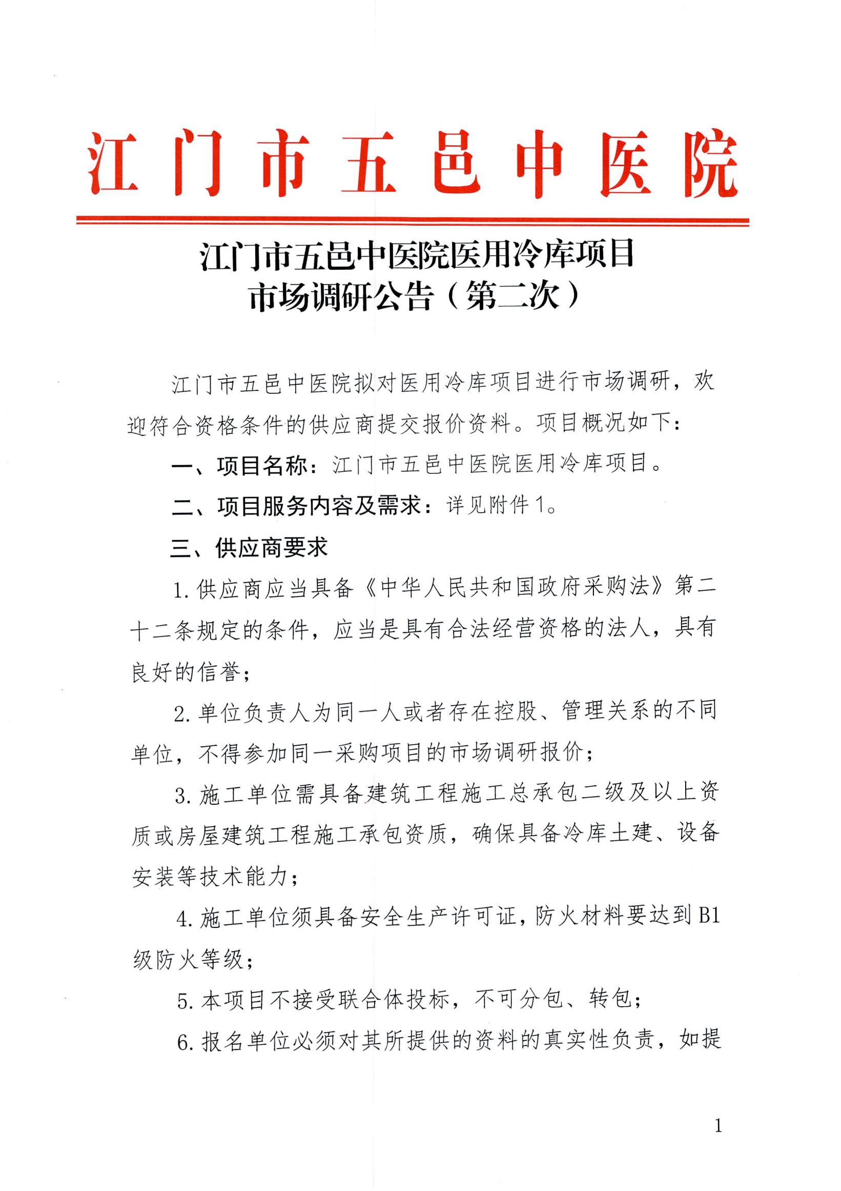江门市五邑中医院医用冷库项目市场调研公告(第二次)