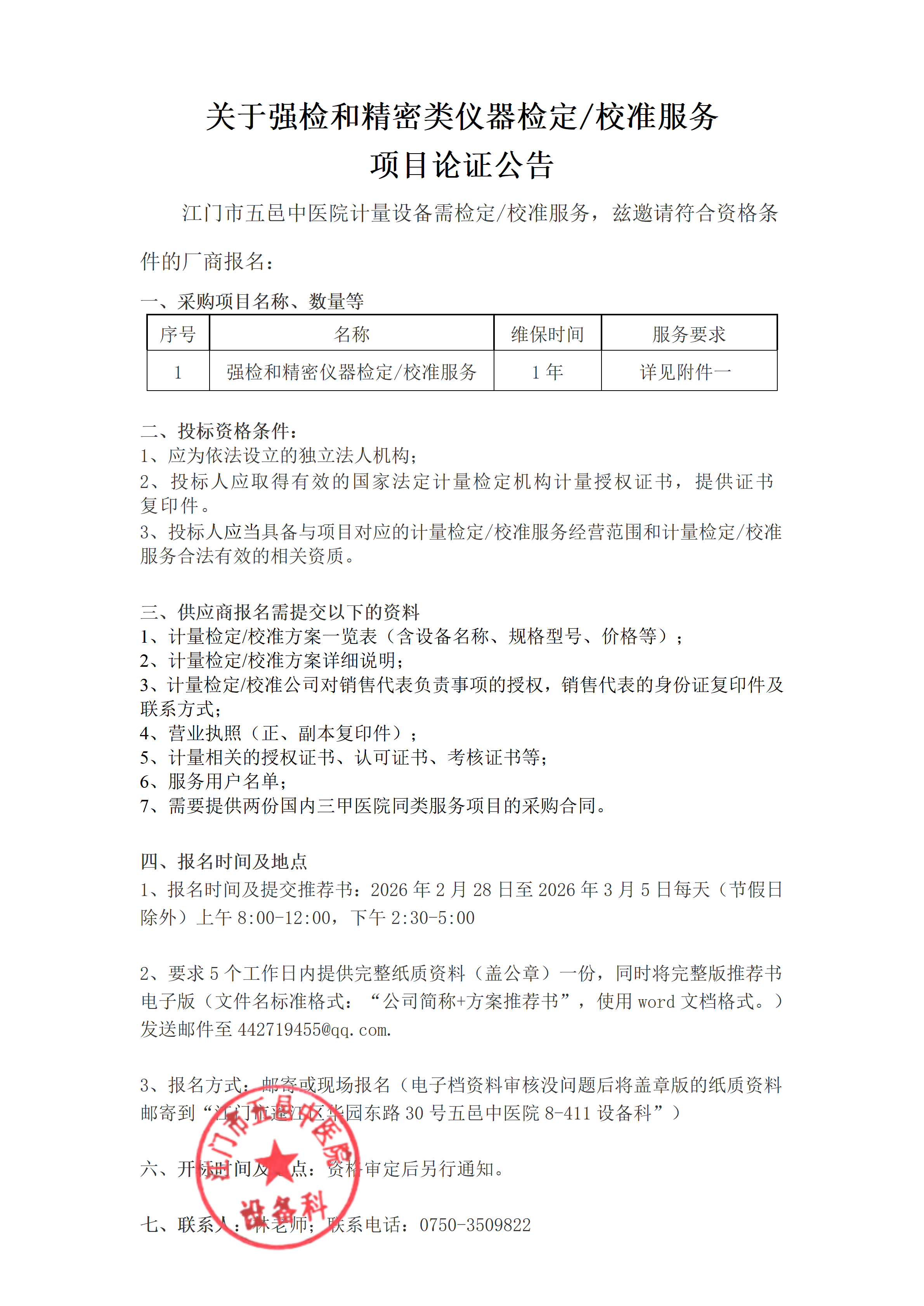 强检仪器检定校准服务项目论证公告