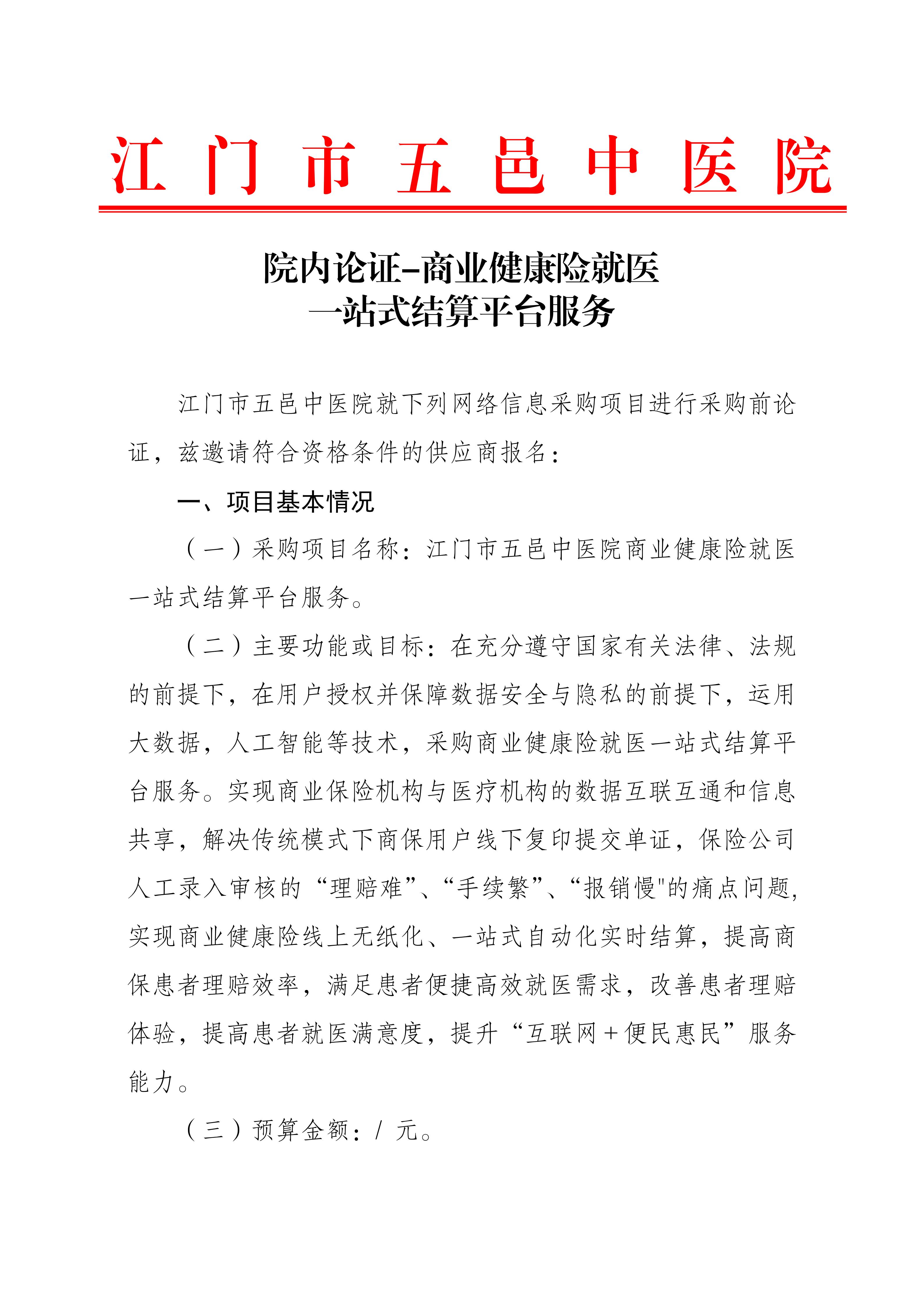 院内论证——商业保险险就医一站式结算平台服务