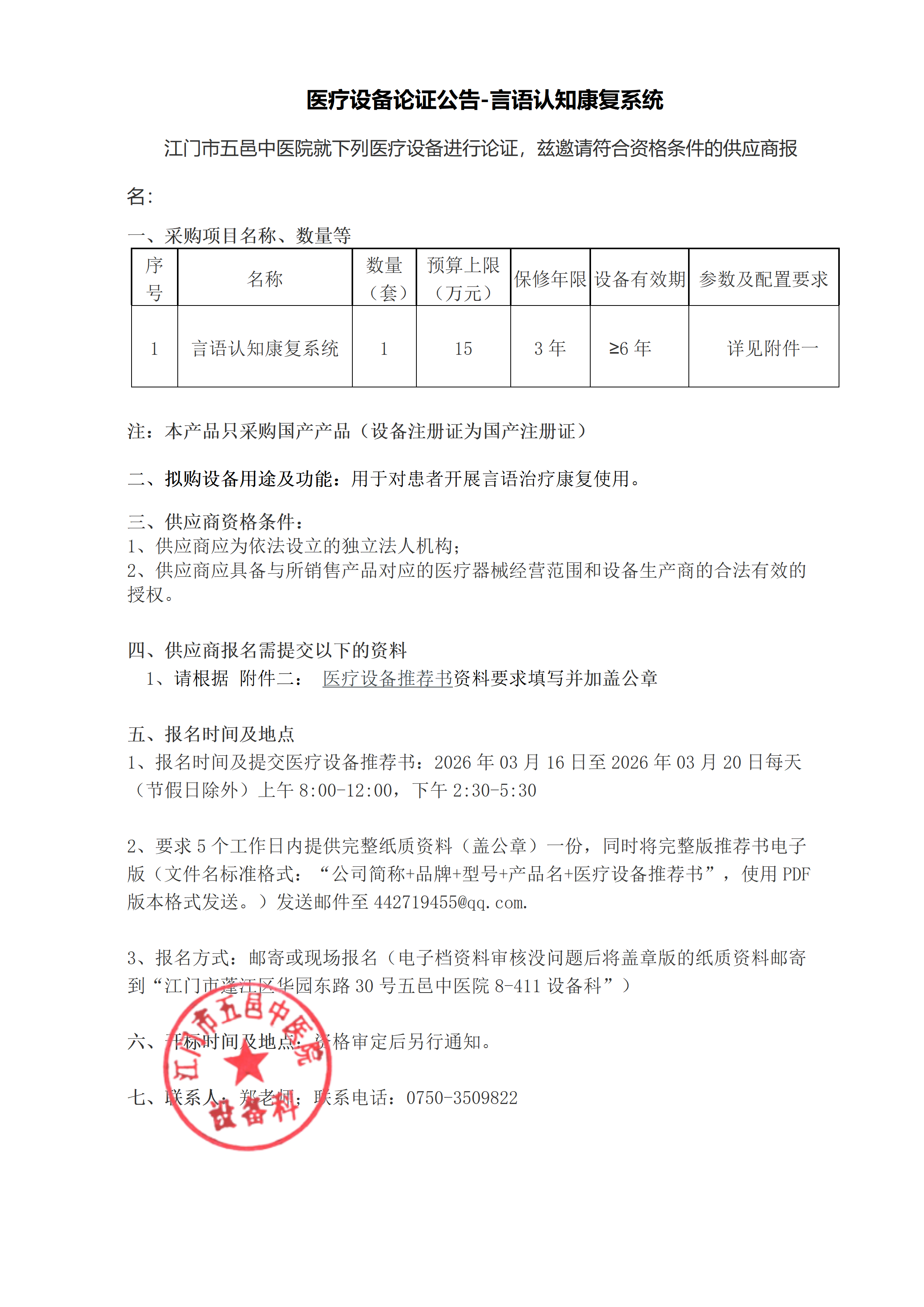 附件二五邑中医院医疗设备推荐书模板 .docx