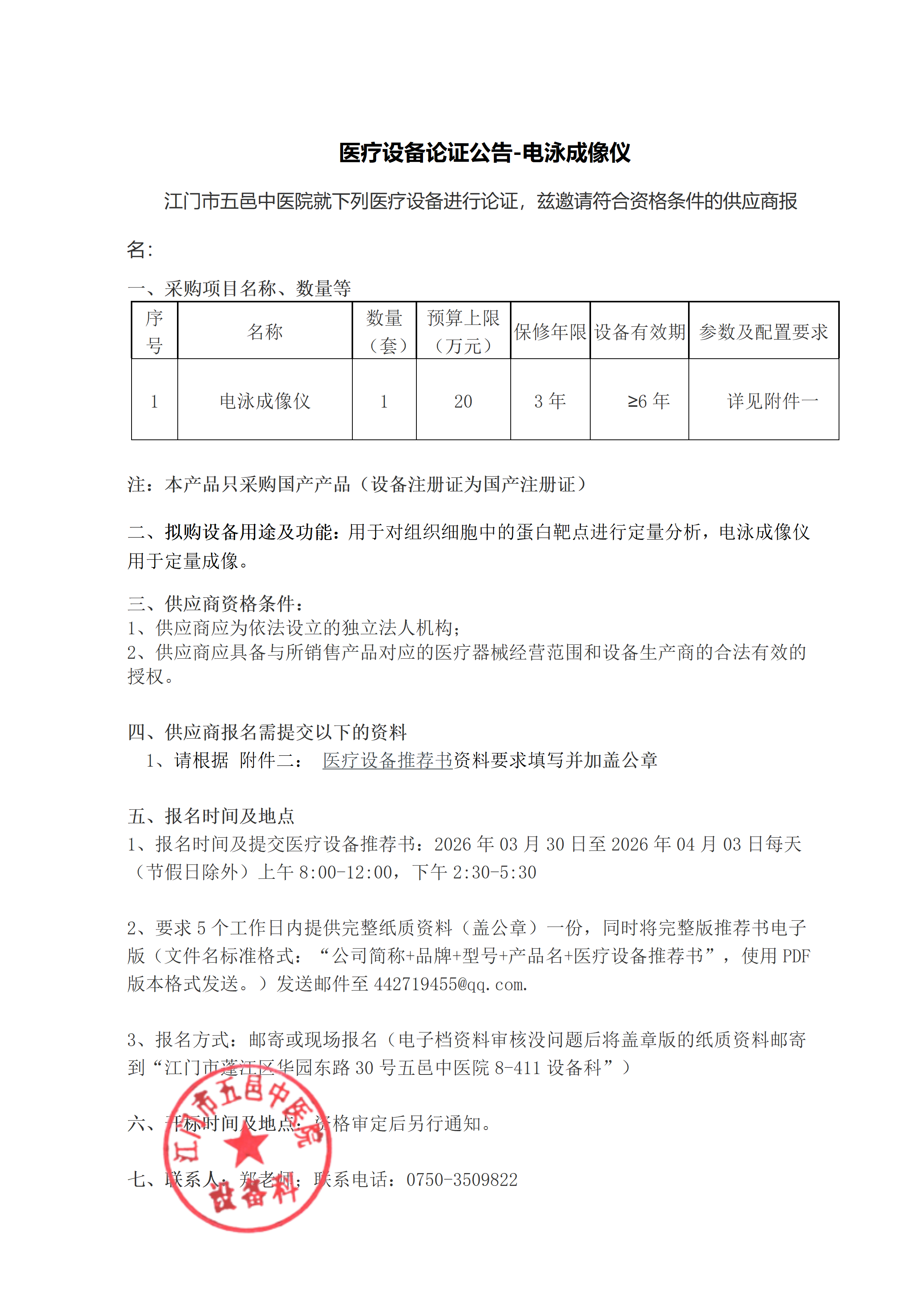 附件二:五邑中医院医疗设备推荐书模板.docx