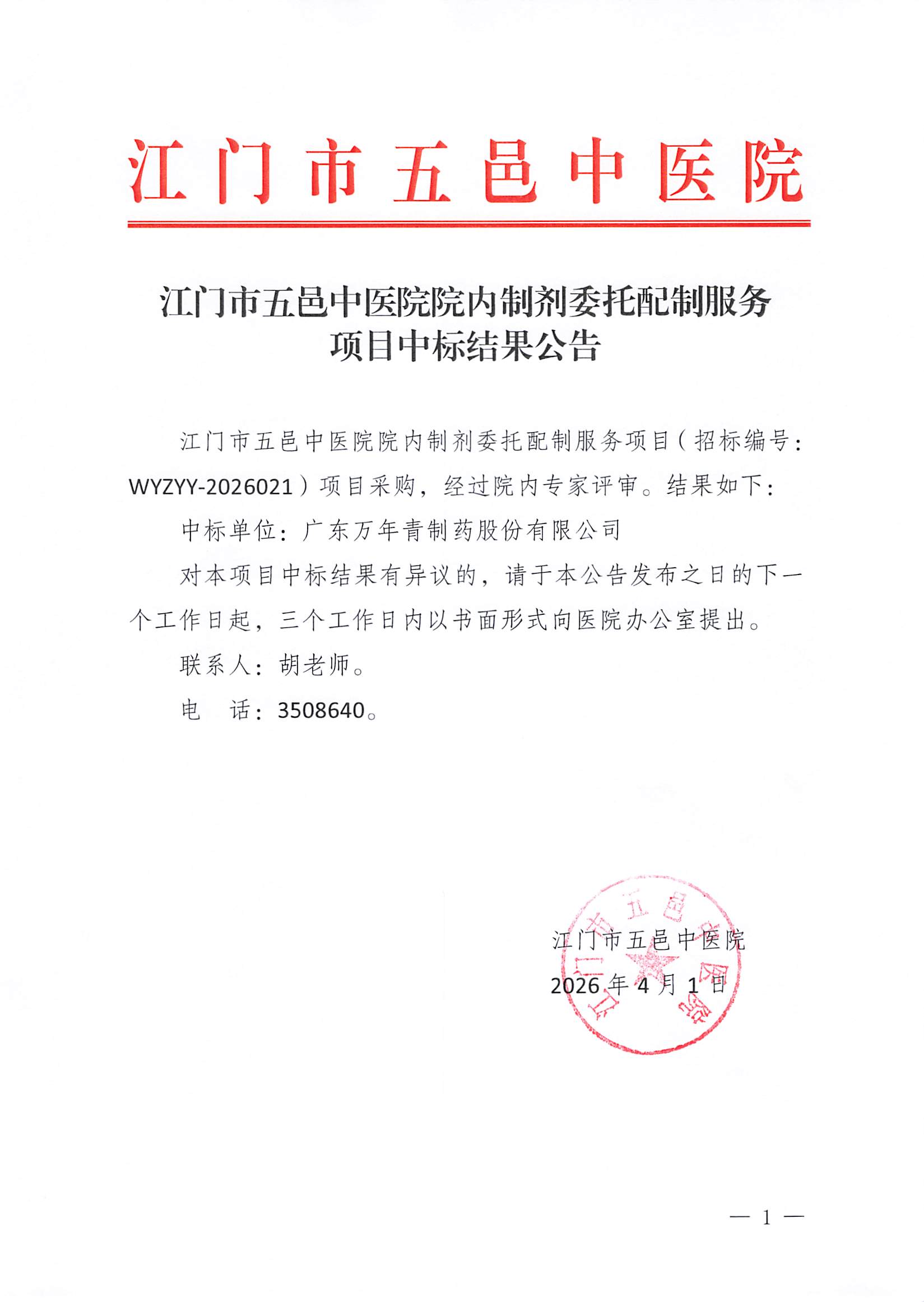 江门市五邑中医院院内制剂委托配制服务项目中标结果公告