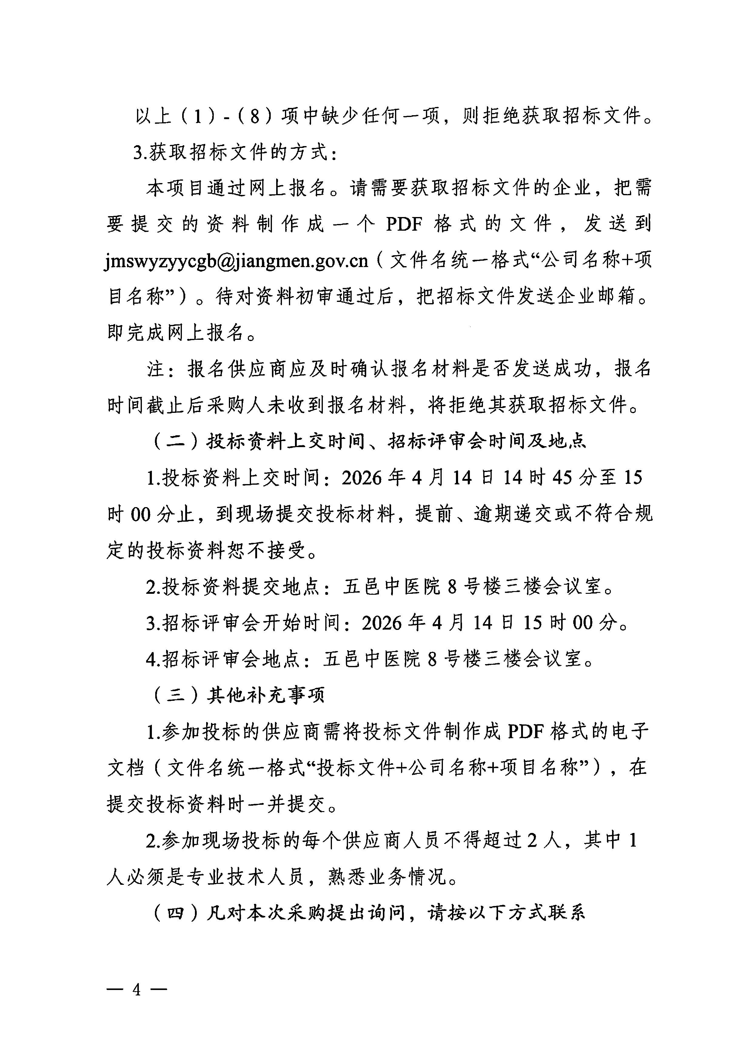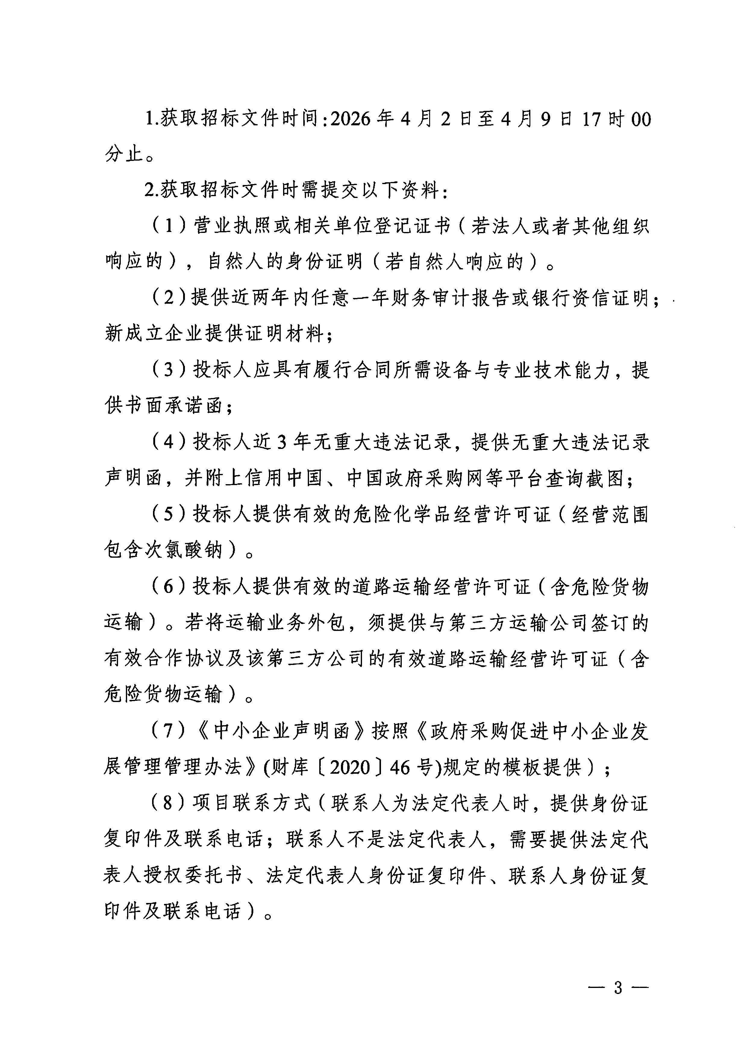 江门市五邑中医院2026-2028年污水处理站次氯酸钠溶液配送服务项目招标通告